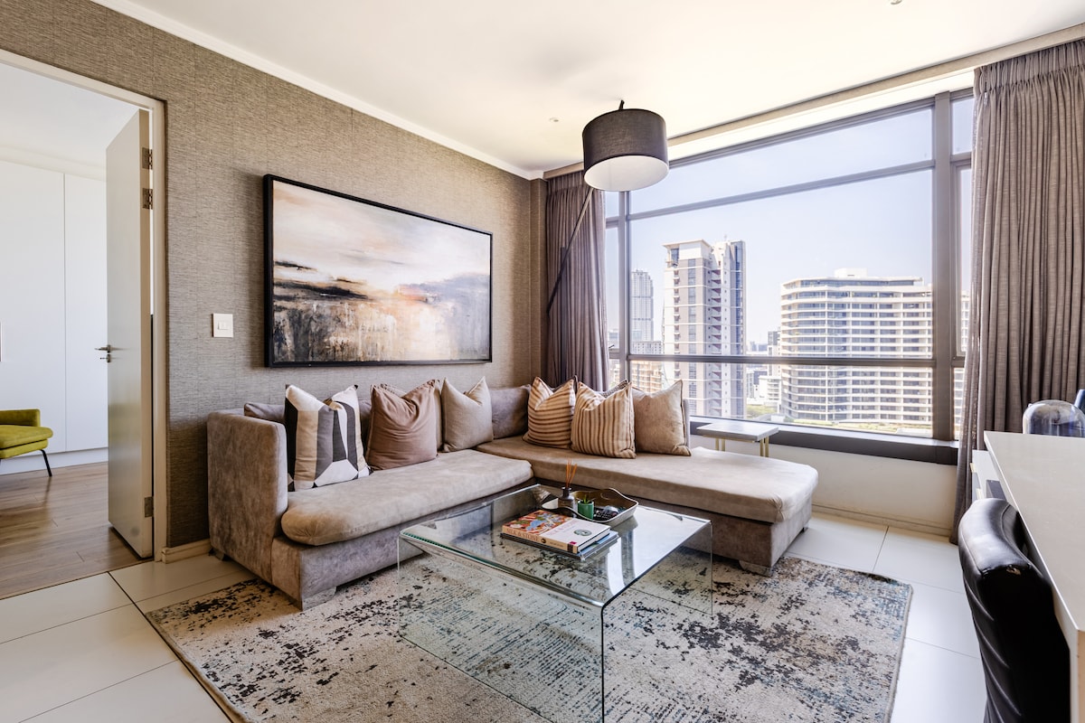 Contemporary Style defines this beautifully appointed classic contemporary apartment, in a very exclusive and sought after block, delivering an aesthetic that is classy with a soft ambient touch; The apartment has been completely renovated to exacting high-end standards. Ideal for the executive regularly travelling to Johannesburg wanting privacy, comfort and spaciousness in the heart of Johannesburg's bustling Sandton CBD or someone looking for an extended private luxurious apartment breakaway.