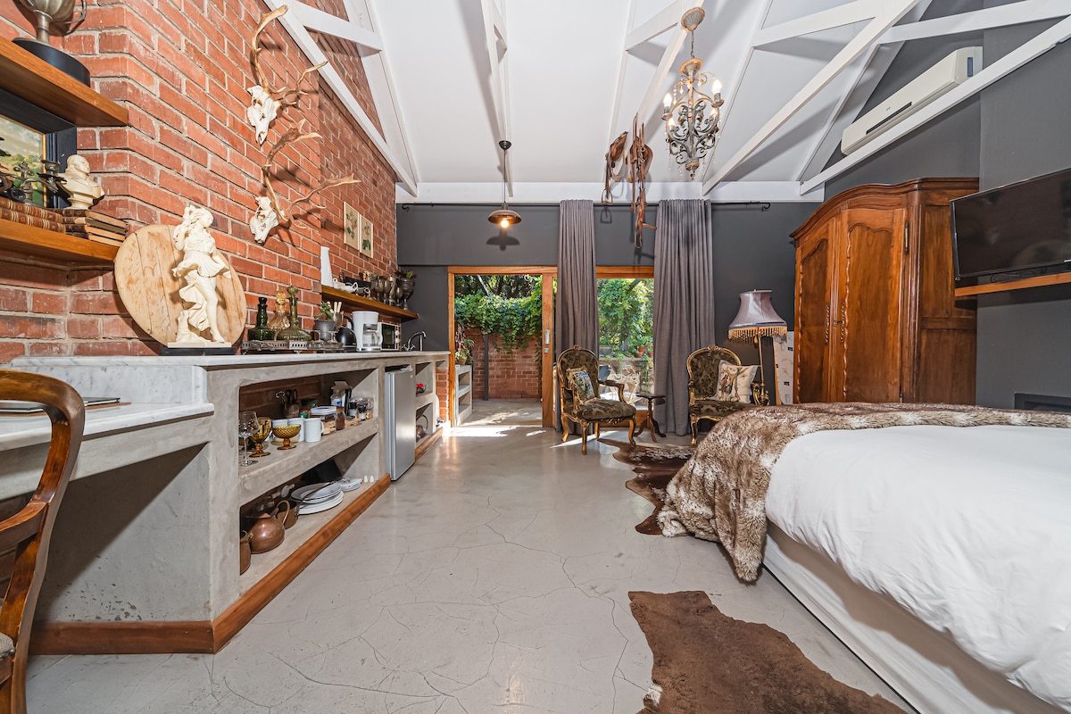 Situated in the highly sought-after Little Chelsea in Parkhurst, Gravity House is a newly-renovated home. Stylishly furnished, it’s ideal for business travellers, families, or weekend getaways. Full back up power! The location is within walking distance from the renowned 4th Avenue strip which boasts trendy watering holes and some of the finest restaurants in Joburg. Located in a cul-de-sac with a private park down the road, it’s the perfect escape from the hustle and bustle of city life.