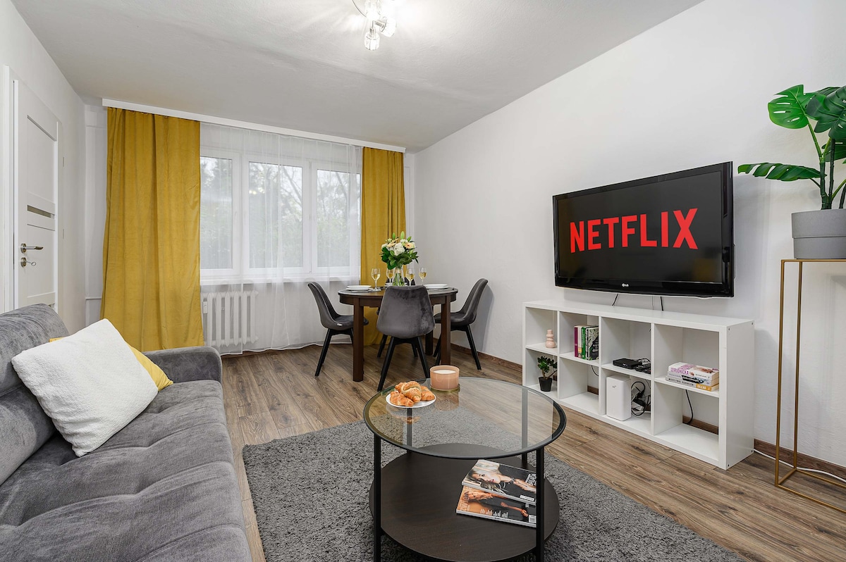 Modern and cozy, comfortable and equipped apartment in the city center with very convenient infrastructure. Ideal for business people, couples, families and travelers. Close to numerous coffe shops, bakeries, bars and restaurants, including vegan, grocery, seasonal fruit and vegetable stalls, a green park with playgrounds. Close to city bike stations, metro Politechnika station, tram network, and not far from central railway and bus station, shoping malls Zlote Tarasy, Wars Sawa.