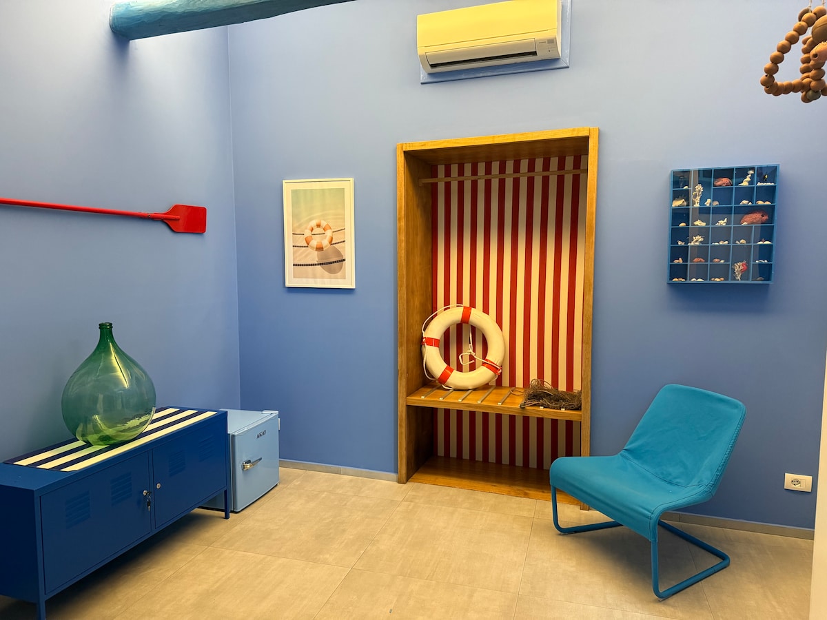 La nostra Marina Piccola è un'ampia camera da letto matrimoniale con balcone e bagno privato (accesso esterno alla camera). Su richiesta è possibile aggiungere un terzo letto singolo molto confortevole. La camera è dotata di smart TV, aria condizionata, guardaroba, mini frigo e connessione internet Wi-Fi.