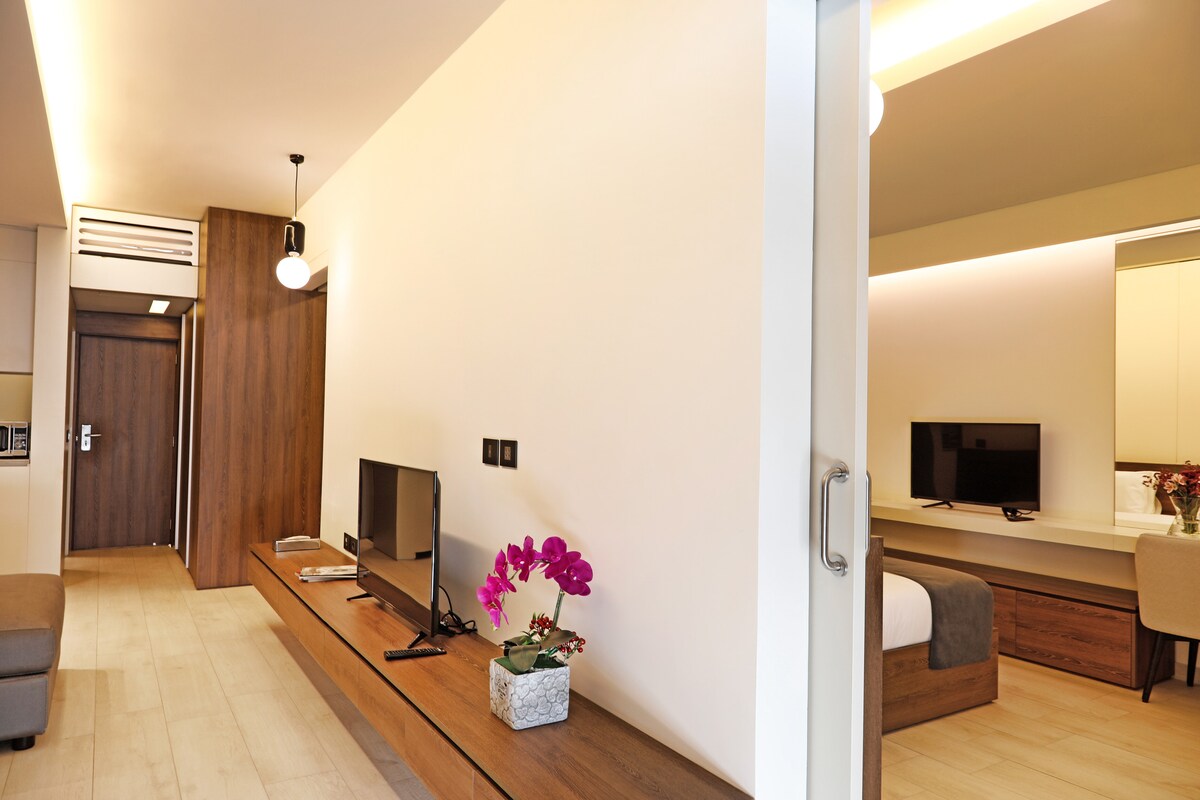 Featuring one bedroom with one living room Sea OR urban view, spreading over 84 m2, with a Practical kitchenette. The 1 bedroom unit embody elegance in a modern and comfy atmosphere ideal for family or individual travelers.