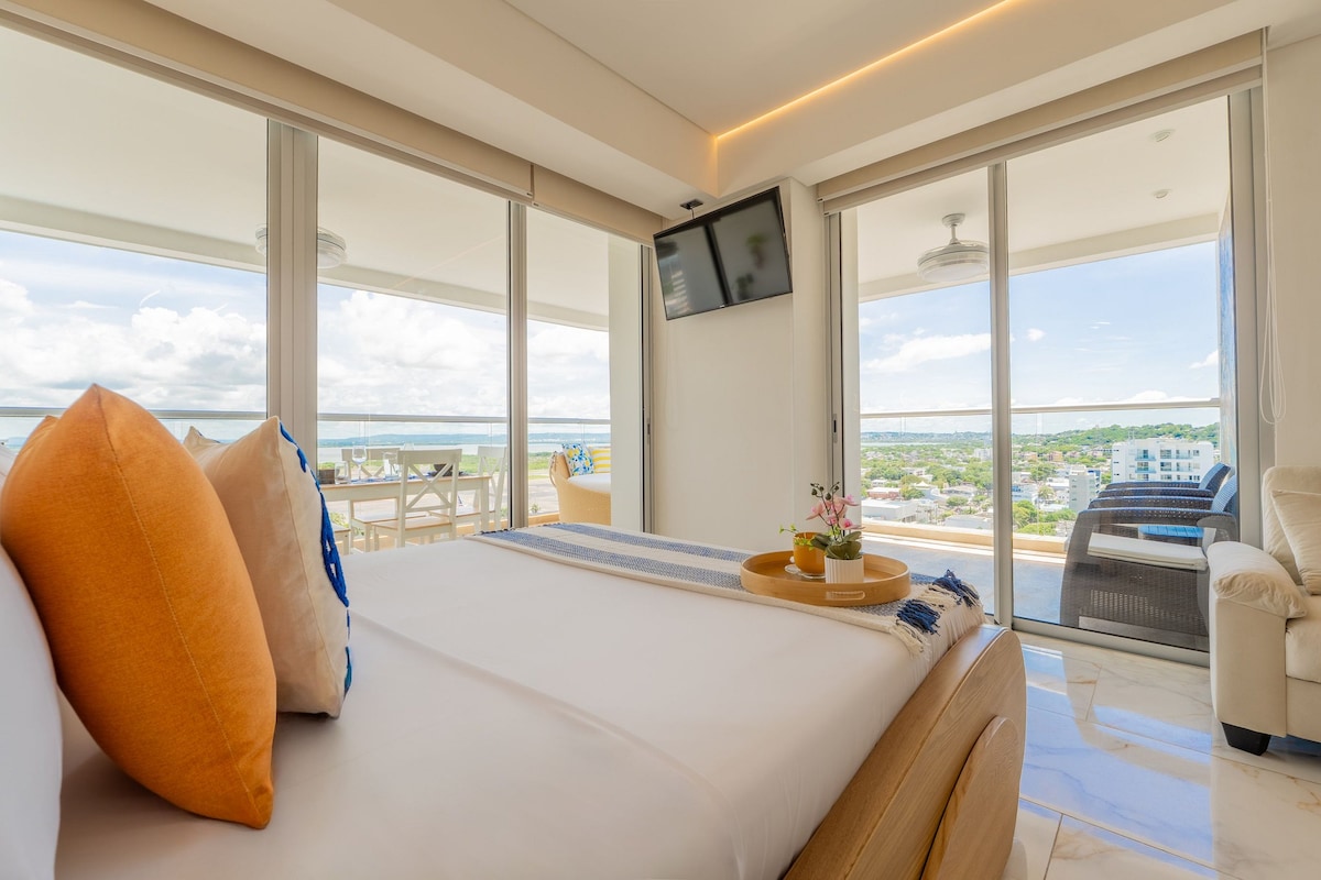 Get ready for rest! This oceanfront, 39th-floor condo is brand-new and offers panoramic views of the Caribbean and the walled city. Housed in a luxury building in the center of Bocagrande, guests will enjoy a close-in location that is within one-mile of historic Cartegena and nearby local attractions. Enjoy five-star resort amenities including a stunning oceanfront pool, first-class fitness facilities, and 24-hour on-site security.