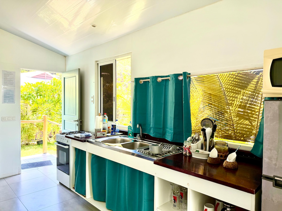Csendes kis paradicsom a hegyekben, 2 percre a tengertől. A természet és a gyümölcsfák által körülvett, polinéz bájjal rendelkező otthon tökéletes a kikapcsolódáshoz és a kikapcsolódáshoz. Ideális hely, hogy egyszerű és nyugodt környezetben élvezhesd Tahaa szépségét. A természet közepén előfordulhat, hogy a helyi élet – mint néhány rovar (ártalmatlan) – néha megnyilvánul. Ez a hely természetes és autentikus varázsának része.