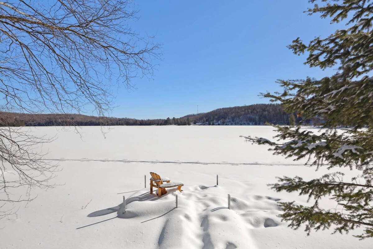 Just 5 min drive to slopes, a VIP parking pass, EV charger and sleeps 9! Discover relaxation & luxury tucked away in the charming Old Village of Tremblant. Enjoy fabulous mountain views and lakeside sunsets, steps to Lac Mercier (free public access via quai & left) boutique shops, restaurants, ice rink, tennis, and Petit Train du Nord. A free 10-minute bus ride whisks you away to the base of the mountain, so you can indulge in your next hiking or skiing adventure without the hassle of parking.