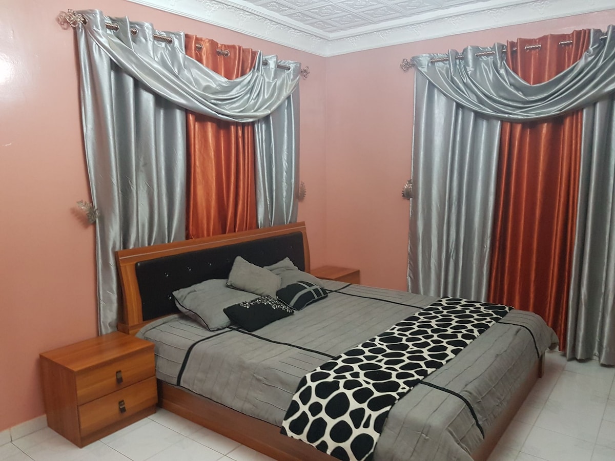 Appartement lumineux à Tevragh Zeina, sur la route de Nouadhibou, avec accès pratique depuis l’aéroport et proche des commodités. Le logement comprend un grand salon-séjour, une cuisine équipée, 2 chambres, et 2 salles de bain, dont une attenante à la chambre principale. Vous profitez aussi d’un patio/terrasse privatif au rez-de-chaussée et d’un stationnement gratuit devant la résidence. Navette aéroport, livraison de repas et visite de Nouakchott disponibles sur demande, en supplément.