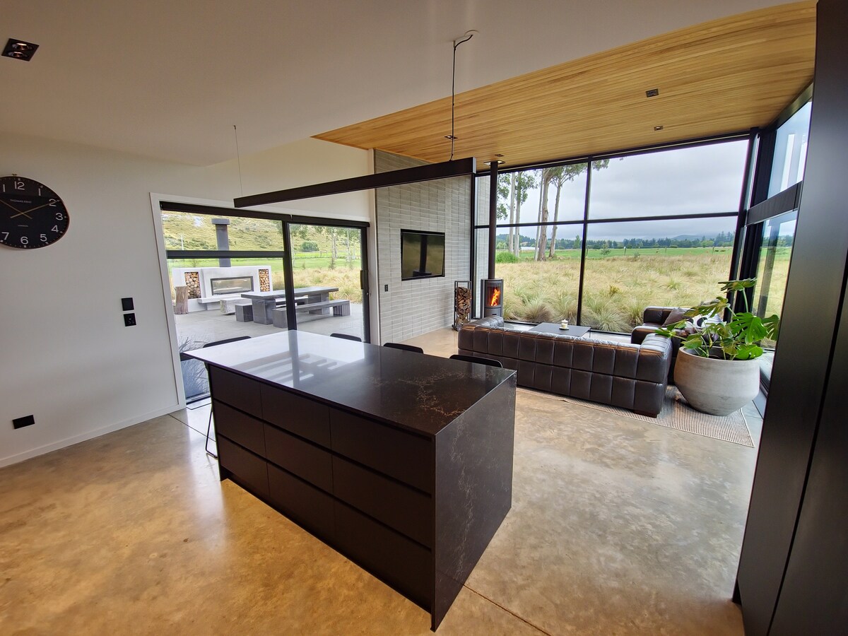 Pihenj meg a Black House-ban, ebben a bará barátságos, napfényes, környezetbarát búvóhelyben, amely a hullámzó vidék közepén található. Ez a stílusos, három hálószobás, modern otthon kényelmet, teljes körű kényelmi szolgáltatásokat és lenyűgöző kilátást kínál a Dobson-hegyre és az Alpokra. Sétáljon az Opuha-tóhoz, vagy fedezze fel a közeli Fairlie települést és a Tekapo-tavat. Merülj el a kültéri fürdőben a világhírű sötét égbolt alatt – tökéletes a felejthetetlen csillagfigyeléshez. Ideális romantikus, békés kiruccanásokhoz vagy családi kalandokhoz, tágas, nyitott terekkel a lazításhoz és az egymásra figyeléshez.
