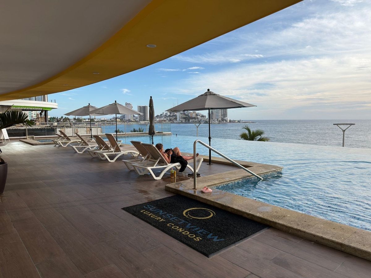 Élj át egy felejthetetlen nyaralást Mazatlanban luxussal, kényelemmel és csodálatos óceánra néző kilátással. Élvezd a pihenésre tervezett, óceánra néző, luxuskivitelű helyet. 2 hálószobája van – mindegyik minisplit légkondicionálóval és tévével. Legfeljebb 4 személy kényelmesen elfér benne. Nappali 75 hüvelykes képernyővel, tágas étkező és teljesen felszerelt konyha. Minden, amire szükséged van, hogy pihenj és élvezd a paradicsomot!