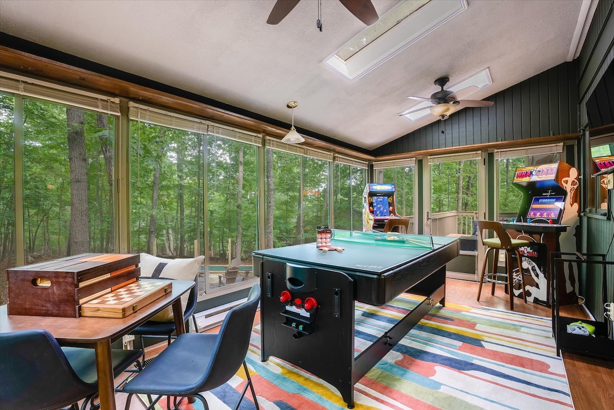 Cozy Retro Lodge~Fire Pit~Arcade~Mountain Views!