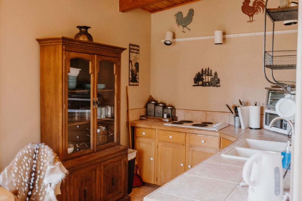 Egy 2,75 hektáros birtokon vagyunk, közvetlenül Albuquerque-től délre, egy kis mezőgazdasági közösségben. Tökéletes elvonulási hely azok számára, akik szeretnének elvonulni, de közel maradni a kényelmi szolgáltatásokhoz. Egy 1890-es vályogházban lakunk, amely osztozik az ingatlanon a casitával, és csendes és barátságos szomszédaink vannak. Van egy maroknyi gyümölcsfánk, egy karikaházunk, ahol zöldségeket termesztünk, és egy vad, 1 hektáros mezőnk. Az ingatlan teljesen el van kerítve, és közvetlenül a casita előtt van saját parkoló.