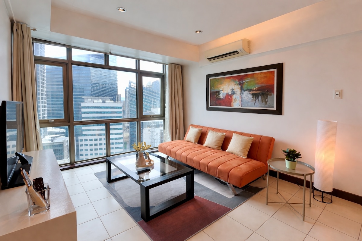 Élvezd a városi életet egy stílusos, egy hálószobás lakásban, közvetlenül BGC szívében. Tökéletes üzleti utazók, párok vagy egyedül utazók számára. A hangulatos helyen kényelmes hálószoba, világos nappali és gyönyörű kilátás vár rád. Élvezd a nagy sebességű Wi-Fi-t, a 2 Smart TV-t Netflix-szel, az automata japán WC-t, a mosógépet és a teljesen felszerelt konyhát. Élvezd az épület kényelmi szolgáltatásait – a medencét és az edzőtermet. Kint a legjobb éttermeket, kávézókat, bevásárlóközpontokat, parkokat láthatod, mindezt gyalogosan megközelíthető távolságon belül. Kérésre van parkolási lehetőség.