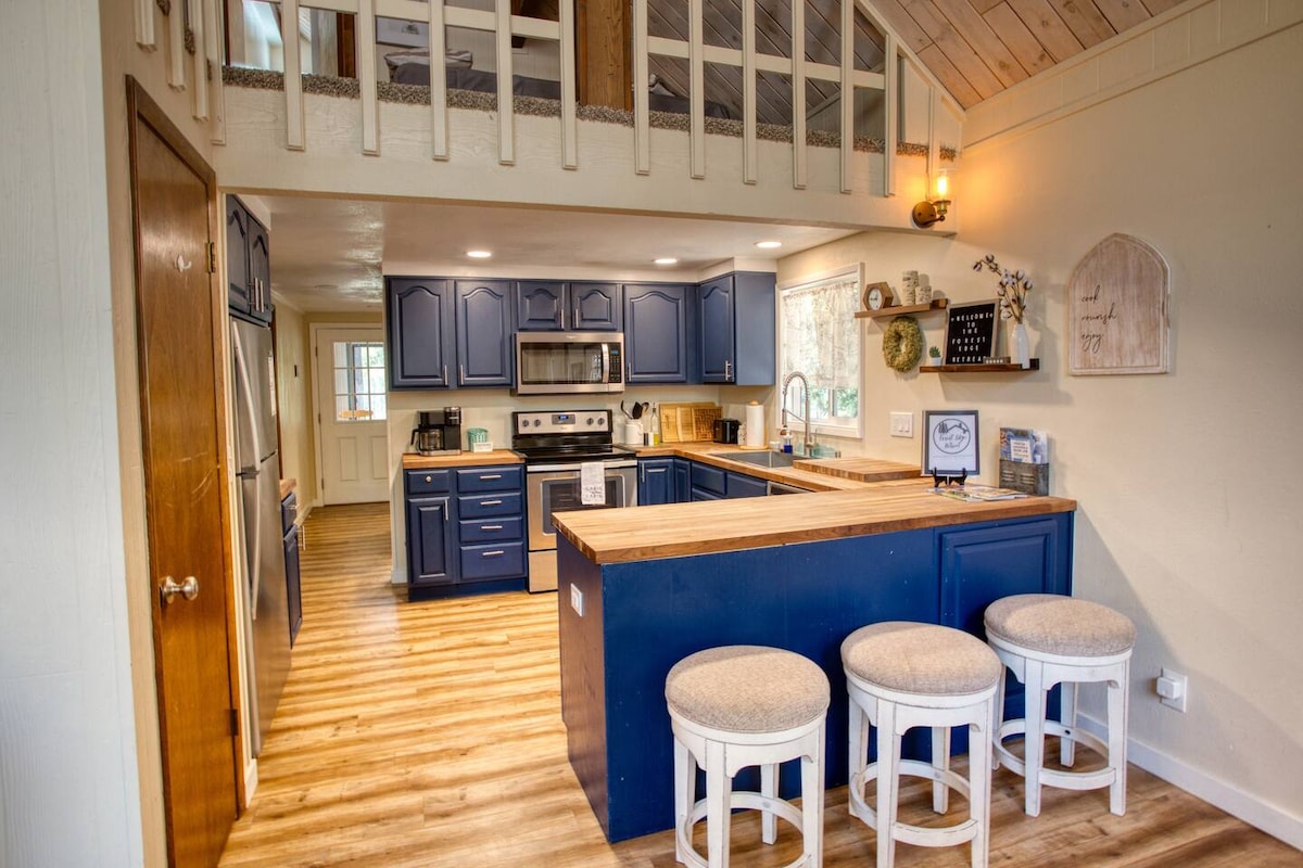 Üdvözlünk a The Bitty Bungalow-ban, egy bájos, apró vendégstúdióban, amely tökéletes azok számára, akik otthonos egyszerűségre és az otthon minden kényelmére vágynak. Jól felszerelt minikonyhával, deluxe, újratervezett fürdőszobával, valamint mini mosógéppel és szárítógéppel rendelkezik. A nagymamám antik, roll-top íróasztala és nagyapám eredeti olajfestményei teszik teljessé az otthon rusztikus megjelenését. A Bitty Bungalow ideális egyedül vagy párban, de akár 6 vendég is elfér benne, így családok vagy csoportok is élvezhetik a fenyők közti szerény szállást.