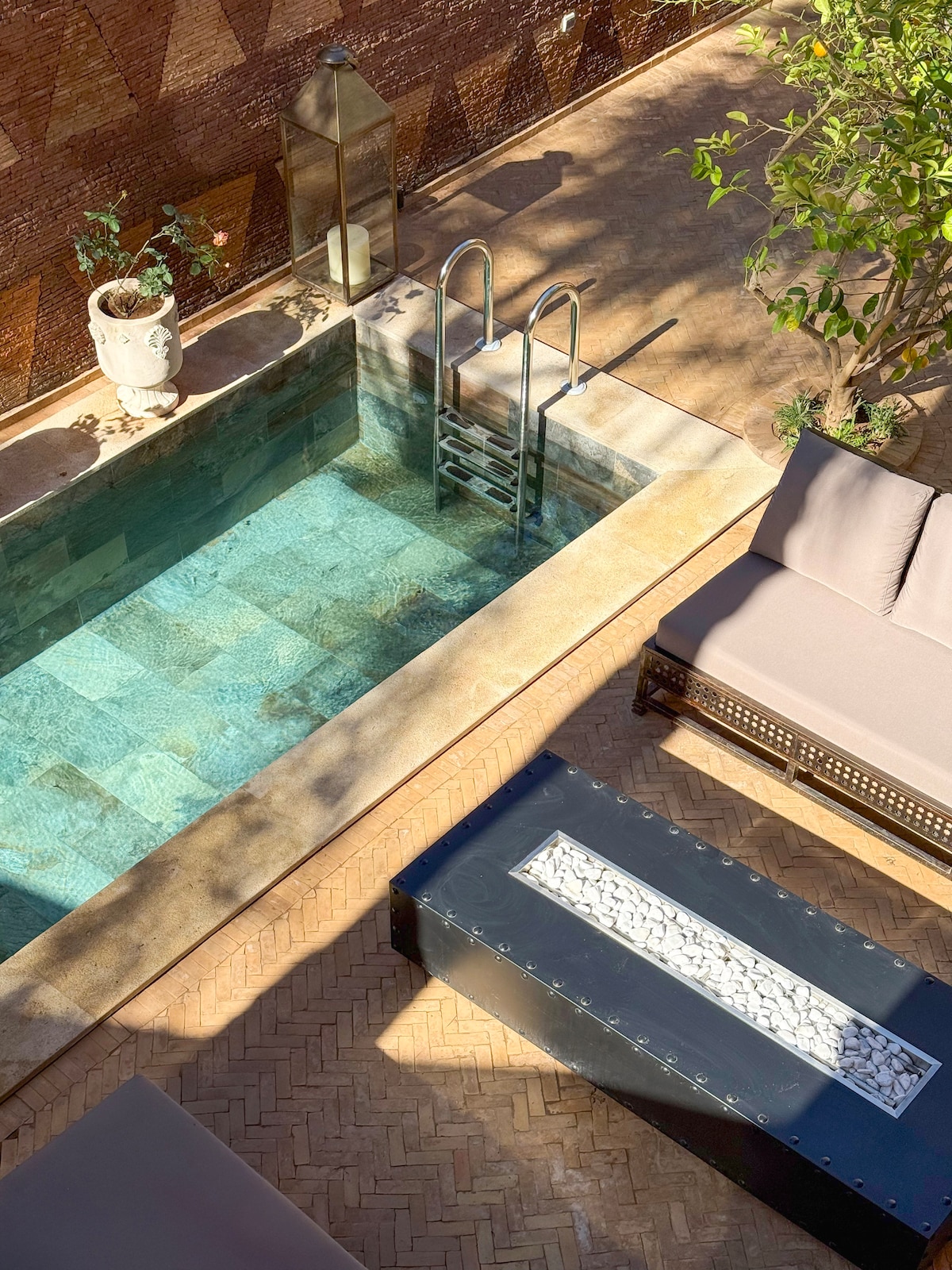 Havre de paix au coeur de la Médina (à 4 minutes de la Medersa Ben Youssef et à 12 minutes de la place Jemaa-El-Fna), le Riad Bab 23 privilégie la détente : piscine chauffée dans le patio pour se relaxer, bassin sur la terrasse pour bronzer en été, pergola pour prendre le petit-déjeuner, salons extérieurs pour faire la sieste, coin cheminée pour les soirées d'hiver... À chaque moment de la journée et à chaque saison, vous trouverez votre coin préféré ☀️