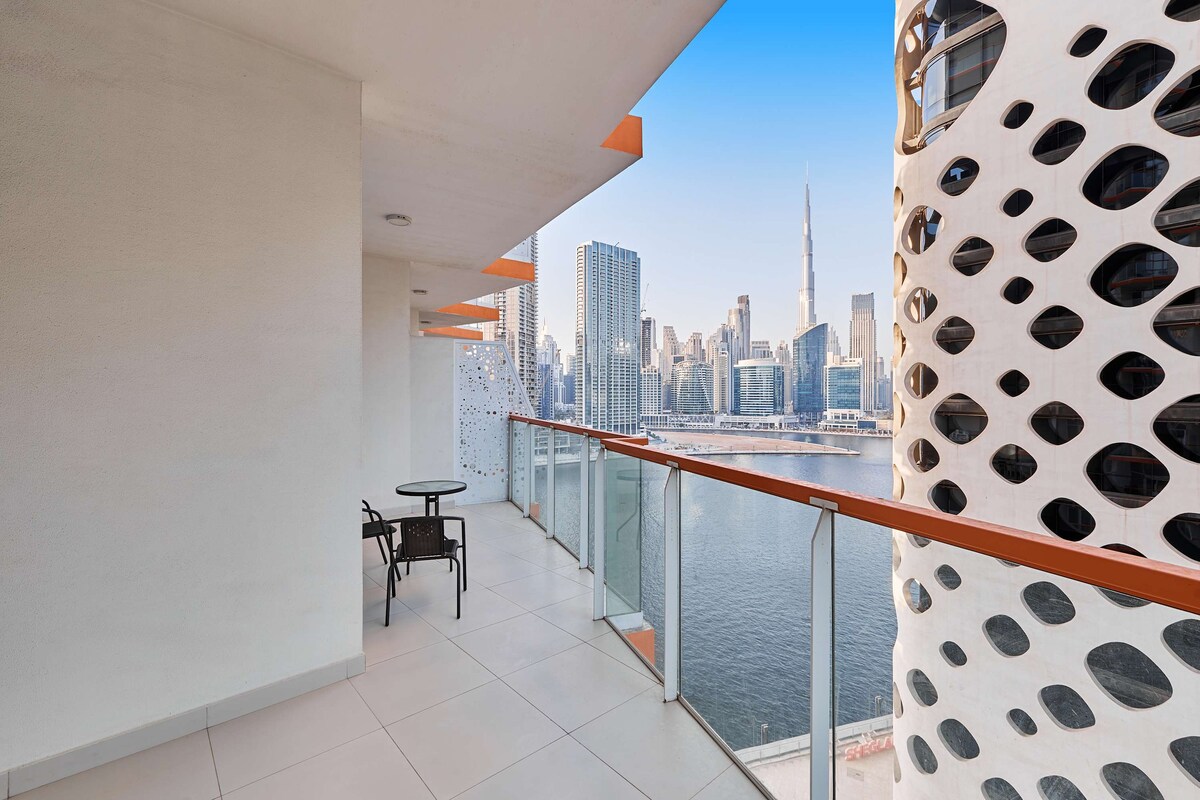 Chic modern studio located in the heart of Business Bay. Enjoy hotel-style amenities including a swimming pool, fully equipped gym, secure parking, and 24/7 security. Minutes from Downtown Dubai, Dubai Mall, and the Canal. Wake up to a stunning Burj Khalifa view and unwind with beautiful Dubai Canal views from the comfort of your studio. Ideal for business travelers and couples seeking comfort, convenience, and a stylish experience in a centrally-located place.