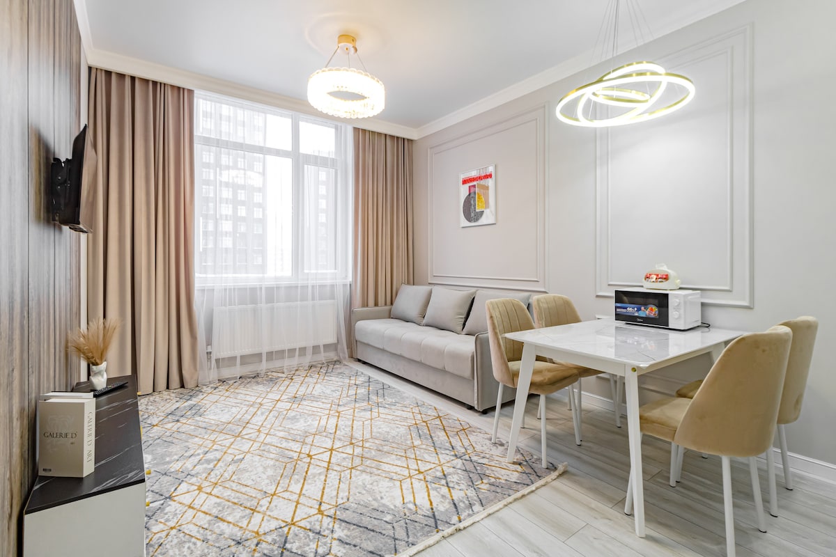 Élvezd a stílusos élményt a város szívében. Gyönyörű 2 szobás lakás modern, kiváló minőségű felújítással, sétatávolságra az Expótól, a Mega selyemtől az Expo New Life lakóépületben. - Vadonatúj bútorok és készülékek - Kényelmes 2 hálószobás ágy ortopéd matraccal. - Tiszta ágynemű és higiéniai kellékek - Okostévé, Wi-Fi - Kényelmes közlekedési csomópont. - Intelligens zár. Éjjel-nappali hozzáférés a lakosztályhoz titkos kóddal. Szeretettel várjuk a vendégeket!