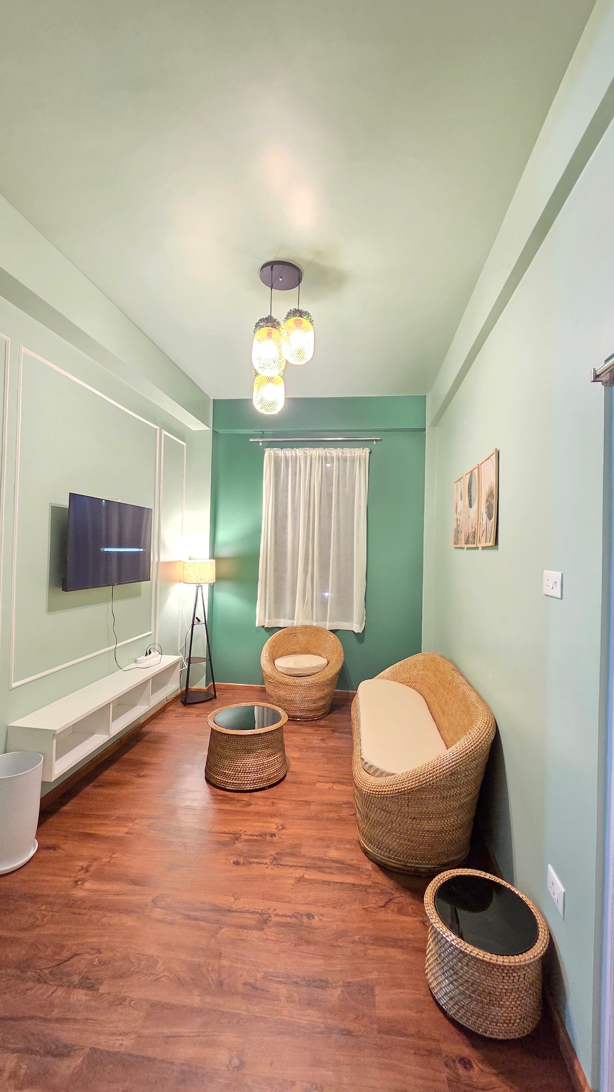 Step into a warm and thoughtfully designed 2BHK retreat in Shillong, styled with soft earthy tones, handcrafted wooden furniture and cozy boho accents. The apartment offers a spacious living room, serene bedrooms with hotel-style bedding and a charming dining nook with a live-edge wooden table. Soft lighting, curated décor and peaceful surroundings make this the perfect space to relax, unwind and feel completely at home. Perfect for couples, families or anyone seeking a peaceful mountain escape.