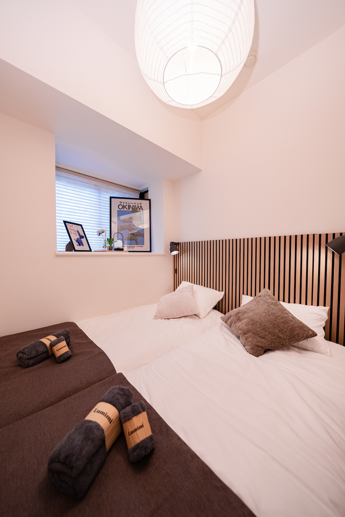 Nyugodt, minimalista loft mindössze egy megállónyira Sibuyától és Roppongitól – tökéletes egyedül utazóknak vagy koncentrált távmunkához. Gyors Wi-Fi, Aeron szék és kompakt kétszemélyes ágy (150×210 cm) – ideális egy személynek, kényelmes két személynek. Az üveg fürdőszoba és az elegáns betonfalak modern hatást keltenek (megjegyzés: némi téli páralecsapódás – csak kapcsold be a fürdőszobai ventilátort). Bár nincs gardrób, a hely négy nagy bőröndnek is elegendő, és egy függőrudat és tíz fali akasztót is találsz, hogy rendben tarthasd a dolgaidat. Heti mosodai szolgáltatás.