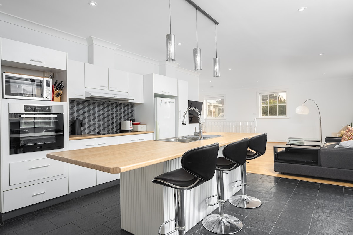 EGYEDI ÉS IGÉNYES, önálló lakás. A lakást raktárból alakították át, és a földszinten található. A tér modern, tágas, világos és kényelmes. Privát hozzáférés egy jól megvilágított bluestone sávból, Fitzroy szívében, 2 jó méretű hálószoba (és kérésre egy queen-size kanapéágy) Minőségi ágynemű és törölköző, alapvető szükségletekkel (organikus/ fenntartható/ helyi, ha lehetséges). Vadonatúj Borch mosogatógép, sütő, főzőlap és szagelszívó.