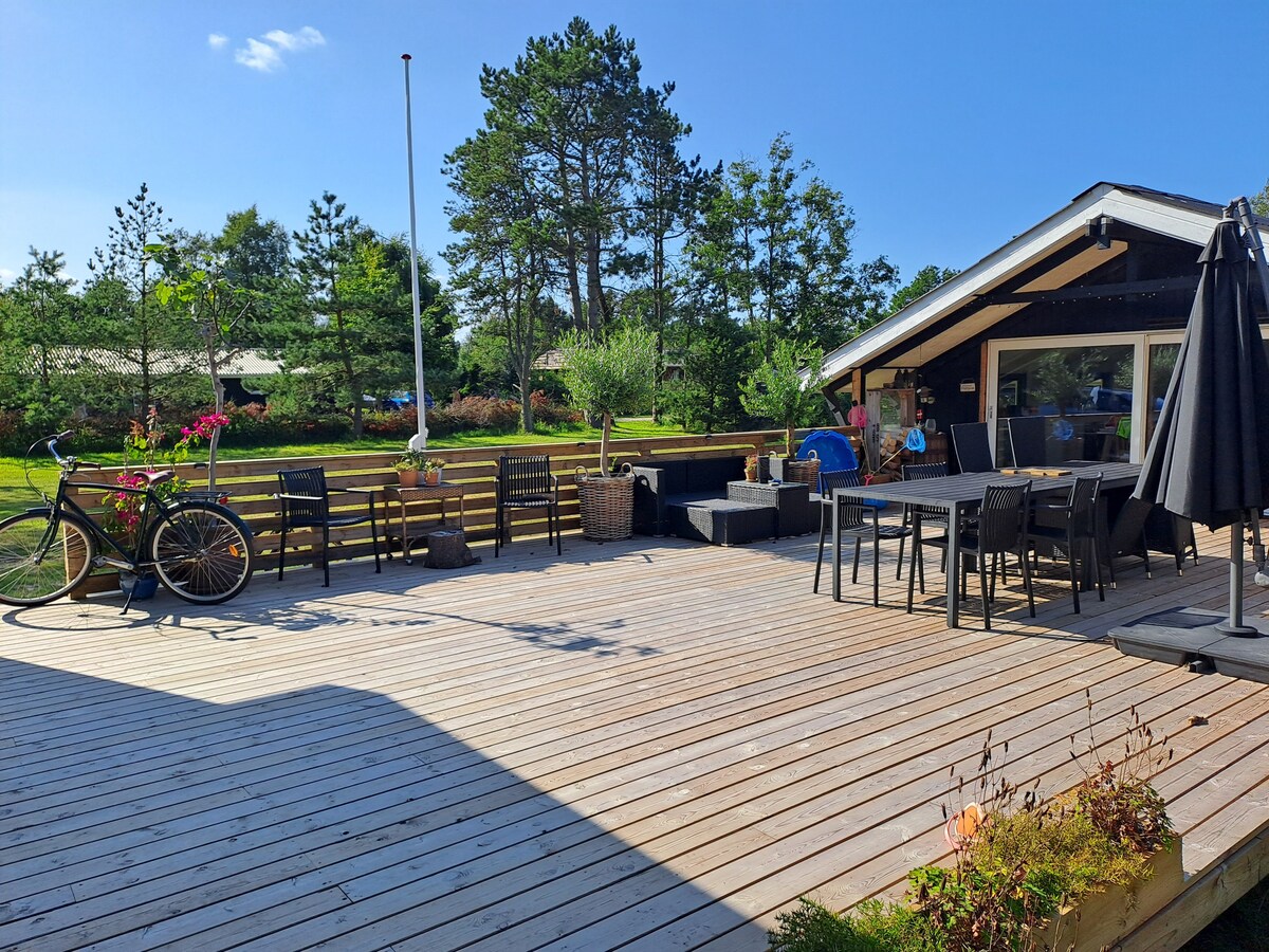 Üdvözöllek gyönyörű rönkházunkban, amelyet a természet vesz körül, és rövid távolságra van a Kattegat-tengertől és a szelíd strandoktól. A ház 3 szobából + egy loftlakásból áll. 2008-ban épült, és olyan modern kényelmi szolgáltatásokkal rendelkezik, mint a szauna, pezsgőfürdő, mosogatógép, rostos internet stb. Nem adjuk ki fiatalok csoportjainak. Kérjük, vedd figyelembe, hogy érkezés előtt 1500 DKK összegű kauciót kell fizetni a Pay Pal segítségével. Az összeget visszatérítjük, kivéve a villamosenergia-fogyasztást. Hozz magaddal törülközőt, ágyneműt stb.