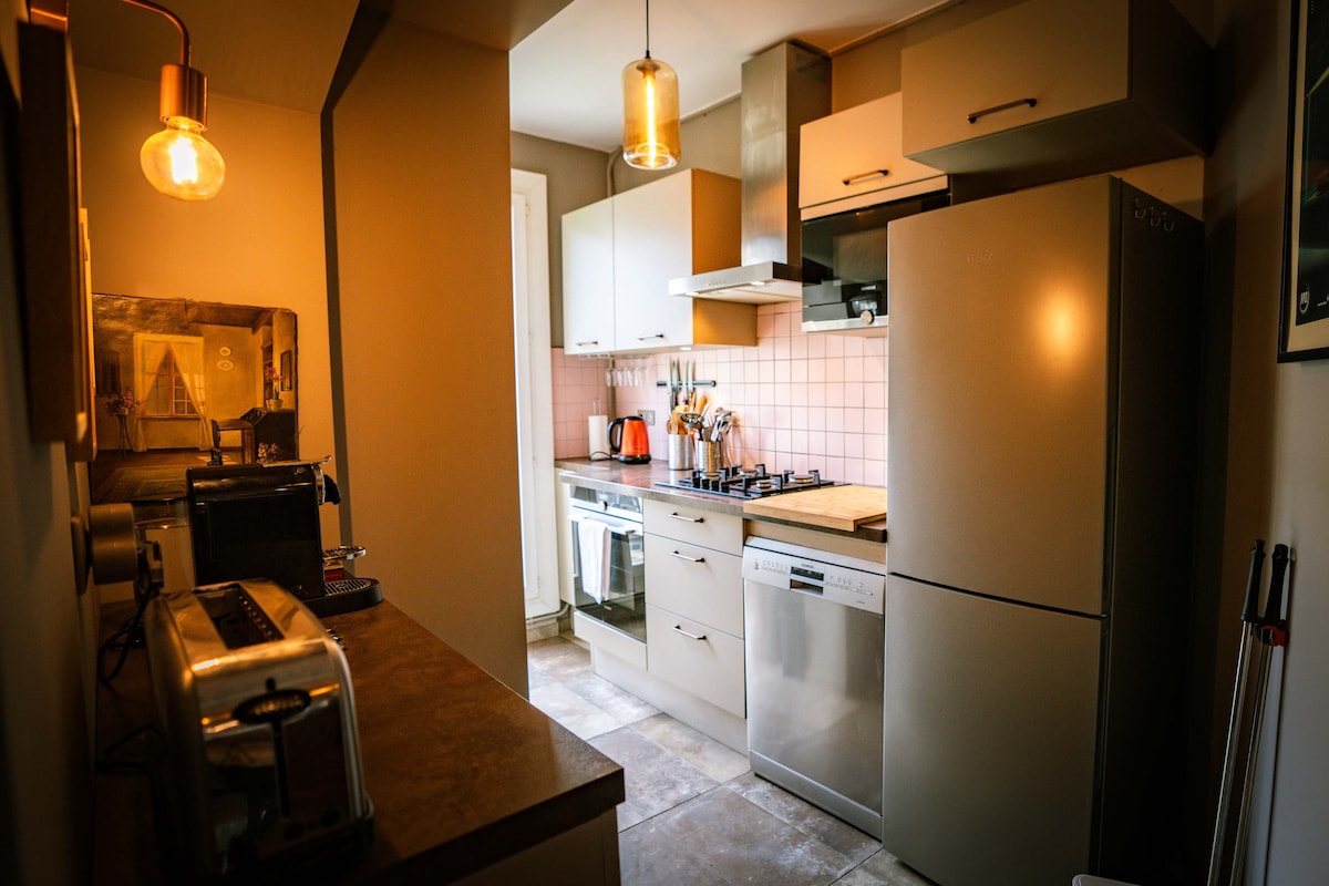 Gyere és érezd jól magad ebben a szép, kétszobás lakásban, teljesen felszerelt. Nagyon jó elhelyezkedésű, a Belleville Park és a Buttes Chaumont Park között kiválaszthatod, hogy hol sétálsz! A 20. kerület macskaköves utcáin és az Eiffel-toronyra nyíló kilátásában található. A 11-es és a 2-es vonal közelében az utazásaid egyszerűek és gyorsak lesznek, hogy a szálláshelyed a lehető legélvezetesebb legyen. Legyetek üdvözölve!