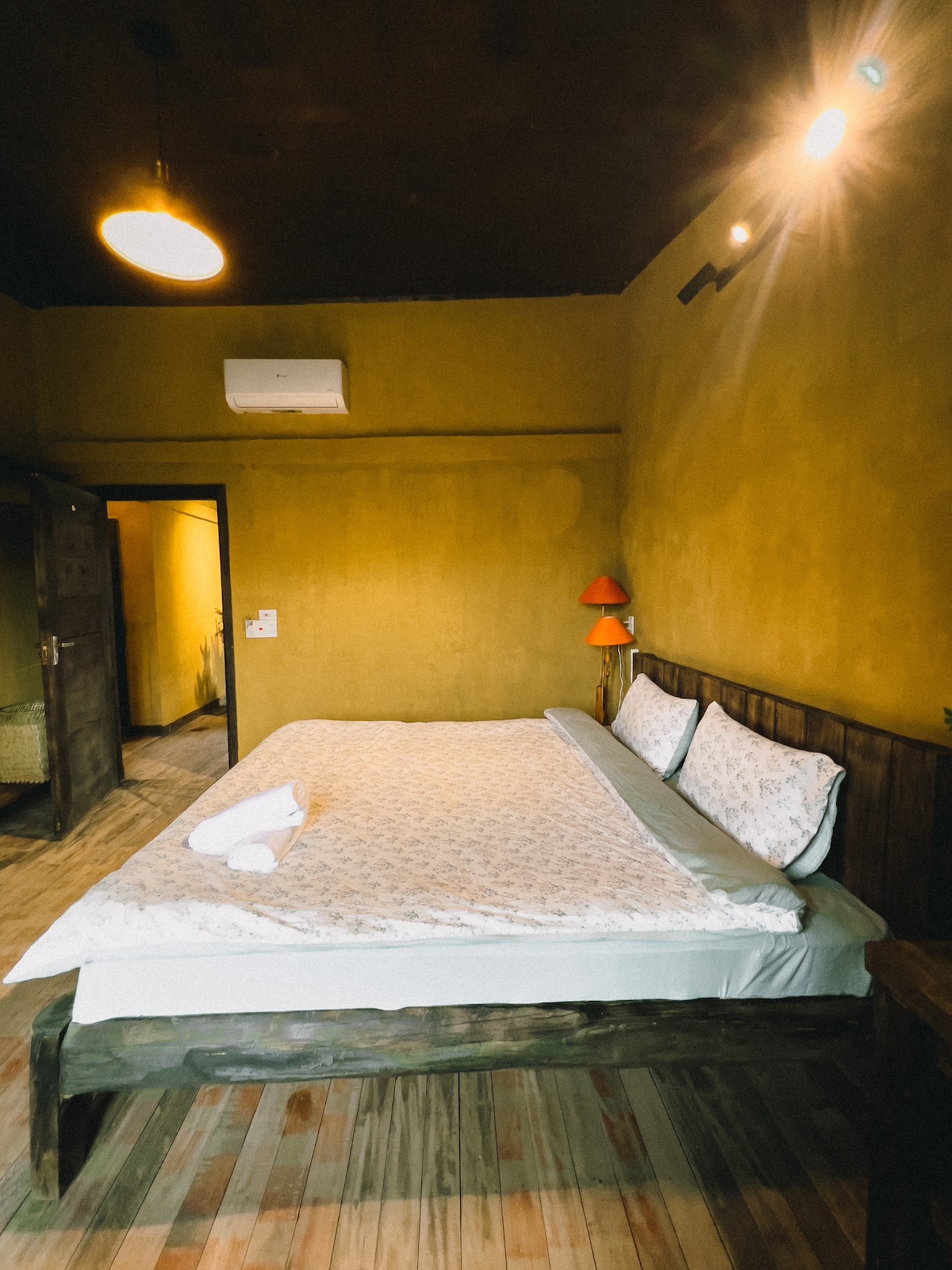 A szoba teljesen felszerelt, kétirányú légkondicionálóval, fűtőlámpás fürdőszobával és elektromos takaróval ellátott ággyal rendelkezik, ami biztosítja, hogy jól aludj a hideg télen. A szoba tiszta, és az ágyneműt mindig kicseréljük minden vendég távozása után. A helyiség tágas, otthonos és egyszerű.