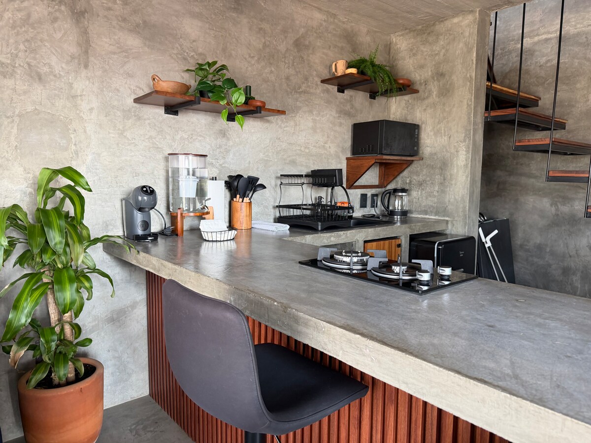 Öt perc sétára a történelmi központtól. Történelmi múzeumokhoz és helyi gasztronómiai piacokhoz közel található természetes világítás és látványos kilátást nyújtó terasz a San Felipe dombra (amely a növényzete és a tiszta vize miatt Oaxaca tüdejének számít). Az épület földszintjén megkóstolhatsz egy helyi különleges kávét, és felfedezheted a regionális textíliák színes világát. Készülj fel a gyönyörű élményekre!