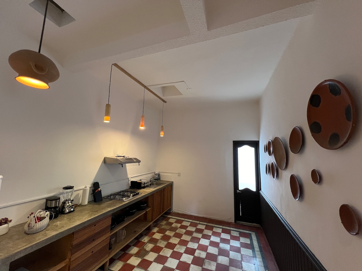 Hangulatos, független lakás közös parkolóval, kényelmesen elhelyezkedve négy háztömbnyire Oaxaca belvárosától. Meleg víz és Wi-Fi 24 órában. Étkező és nappali kényelmi szolgáltatásokkal (edények, evőeszközök és poharak 6 fő részére). Légkondicionáló és tévé Roku-val. Konyha: fagyasztó, kávéfőző, turmixgép, kenyérpirító, narancscentrifuga és edények. Vasaló is van