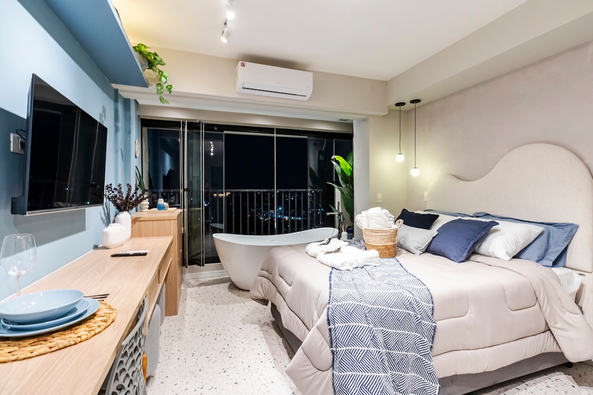 Studio Metrô SP Suíte Casal, gyönyörű Wi-Fi + medence