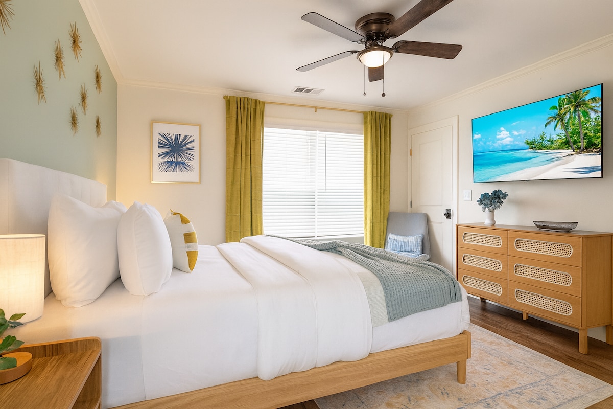 Sétatávolságra található városi rejtekhely. A modern, két hálószobás otthon Atlanta szívében található, és akár 6 fő is elfér benne, és csak egy rövid sétára van a Mercedes-Benz Stadiontól, a State Farm Arénától és a MARTA közlekedési lehetőségeitől. A nyitott konyha és a nappali tökéletes a meccsnapokon. Két kényelmes hálószoba, korszerű fürdőszoba és gyors Wi-Fi – ideális családoknak vagy üzleti utazóknak. ★ 4,9-es értékeléssel és közel 200 véleménnyel következetesen magas helyen áll – foglalj előre a nagyobb koncertekre és sporteseményekre.