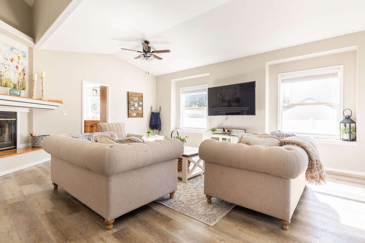 Ez a kényelmes, 3 hálószobás, 2 emeletes otthon Meridian, Idaho növekedésének szívében található. Új ágyakkal, új ágyneműkkel, újabb szőnyeggel, beltéri és kültéri kandallókkal, kukoricás játékkészlettel, nagy képernyős TV-vel, sok DVD-vel, Wi-Fi-vel, YouTube TV-előfizetéssel, pezsgőfürdővel, masszázsszékkel és alacsony forgalommal rendelkezik. A garázs nem része a bérlésnek, és előfordulhat, hogy a tulajdonosnak időről időre hozzá kell férnie. Nagy csoportok nem lehetnek itt sem éjjel, sem nappal. Legfeljebb 8 fő és 3 autó.