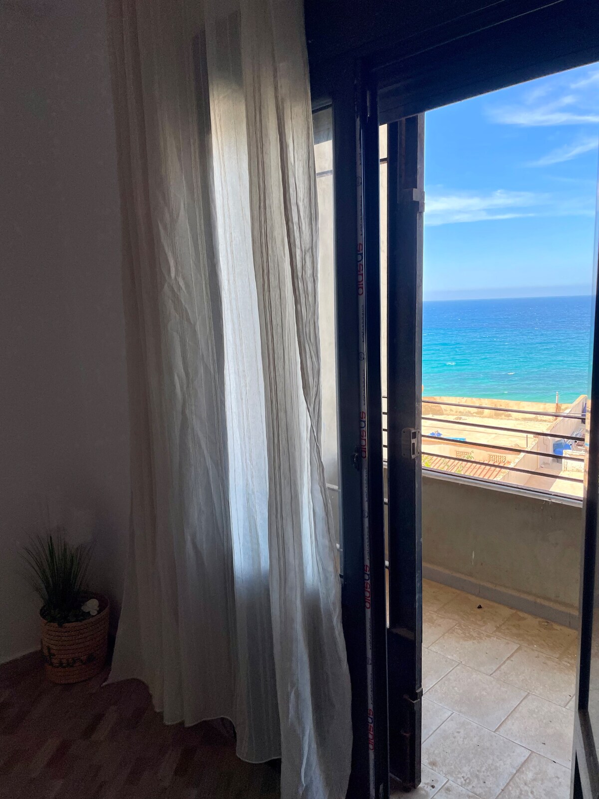 Magnifique appartement avec vue panoramique sur la mer, idéal pour un séjour relaxant entre confort et élégance. Cet appartement spacieux et lumineux se compose de : 2 grandes chambres confortables 1 lit King size 1 lit double (180 cm) Un grand salon avec vue sur mer à 180°, baigné de lumière naturelle Une cuisine américaine moderne entièrement équipée Une salle de bain avec douche à l’italienne Parking privé sécuriser en sous-sol, agent 24/7, camera de surveillance, accès contrôlé avec bip