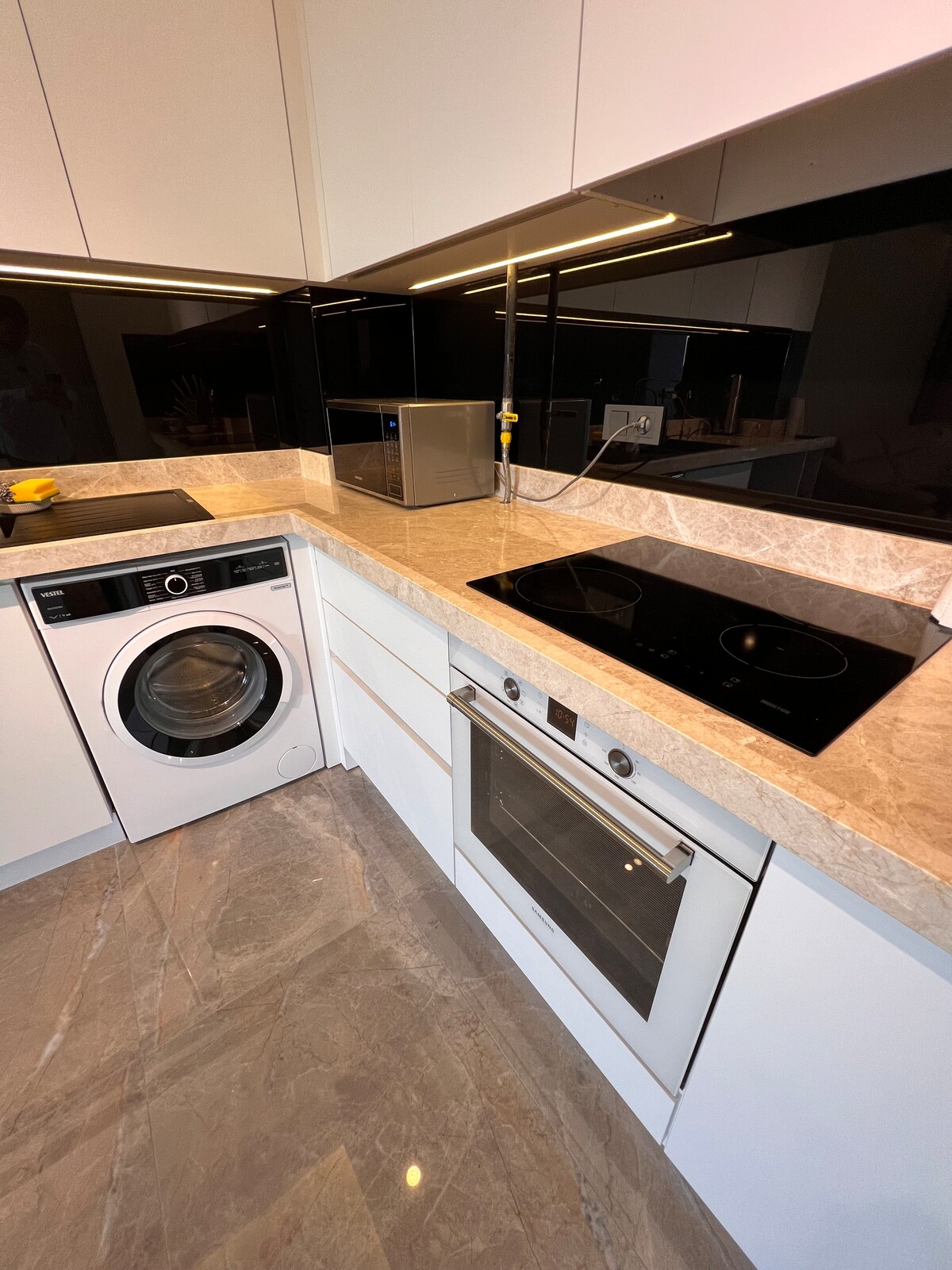 Új, teljesen felszerelt lakás a szükséges bútorokkal és készülékekkel 1+1 formátumban (1 hálószoba és 1 konyha-nappali) Gyors, stabil internet. 2-3 fő számára, gyermekekkel, háziállatokkal kérésre. A Palm City bevásárlóközpont 15 perc sétára, a Forum bevásárlóközpont 35 perc sétára, a sétány 10 perc autóútra. A lakásban minden új, Beko márkájú háztartási gépek, dizájnerbútorok rendelésre készültek. Vannak edények, ágynemű, törölközők. Alkalmas üzleti utakra és családi nyaralásokra.