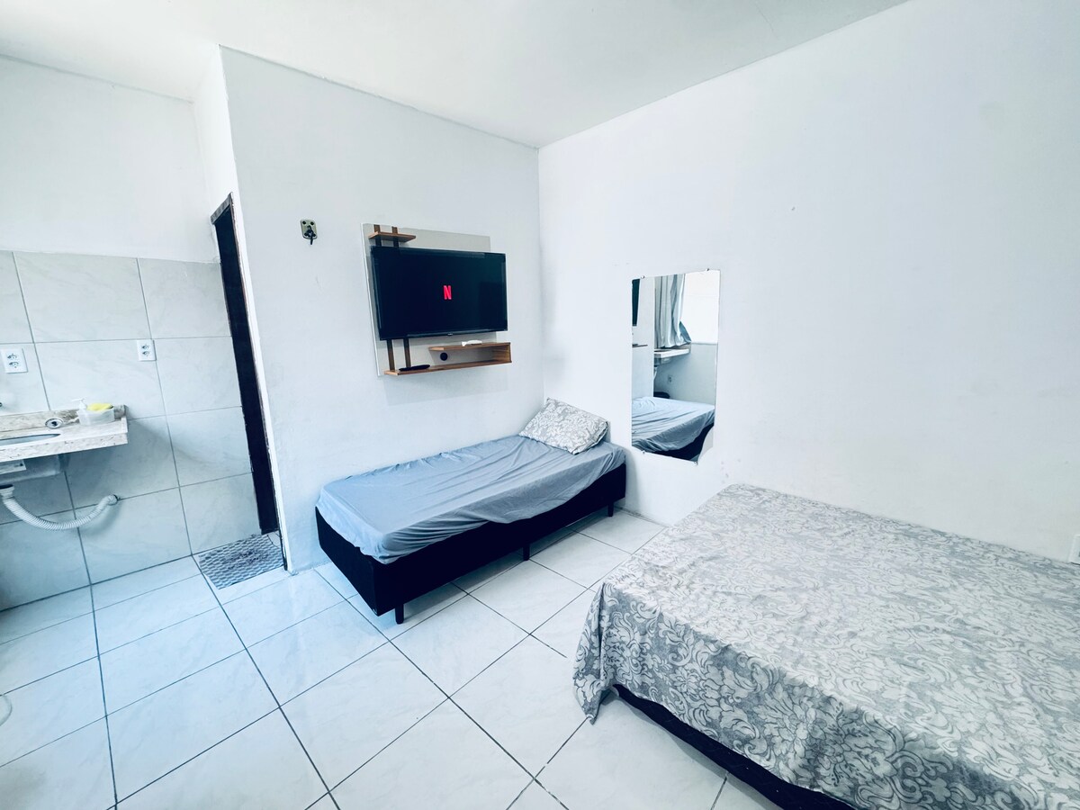 Szuper hangulatos lakás 03 egyszemélyes ággyal és 01 extra matraccal,légkondicionálóval , ventilátorral, minibárral, mikrohullámú sütővel, szendvicssütővel, kávéfőzővel, edényekkel, evőeszközökkel, poharakkal, wifivel, smartv Netflix-szel, törölközőkkel, ágyneművel, vasalóval , mosógéppel és ruhákkal . Élvezd a könnyű hozzáférést mindenhez, amire szükséged van ebben a jó elhelyezkedésű otthonban, 1 km-re a sobral központtól,közel a piachoz ,pizzériában és az Uberhez való hozzáféréssel,taxival