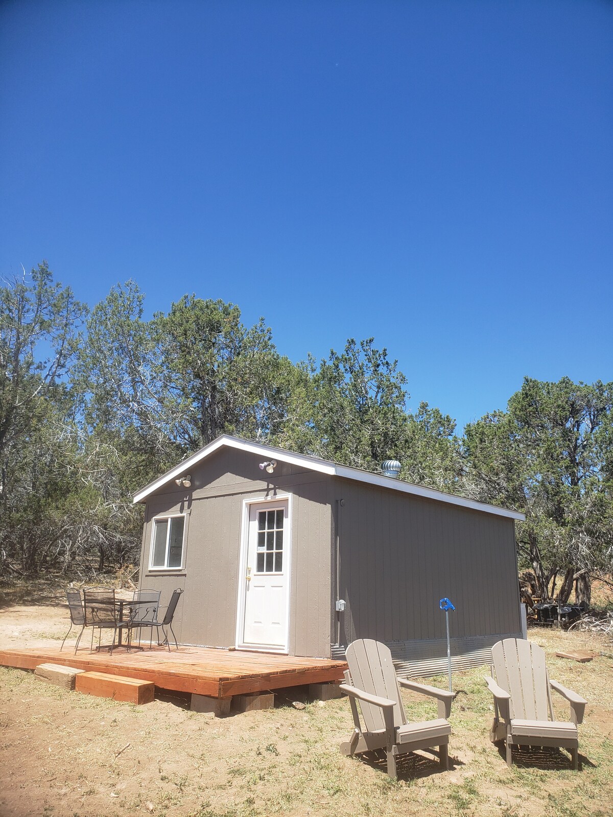 Egy újonnan felújított miniház a gyönyörű Redlands CO. Min-ben, távol a Tabeguache ösvénytől, a National Monument, a Handlebar étterem és a belvárosi Grand Junction bejáratától. Egy hálószoba teljes méretű ággyal, egy fürdőszoba zuhanyzóval és egy kis teakonyha főzőlappal. A kutyákat díj ellenében engedélyezzük, de látogatásonként 1-re korlátozzuk őket. Más állatokat nem engedélyezünk. Kérjük, jelezd, ha állatot szeretnél hozni