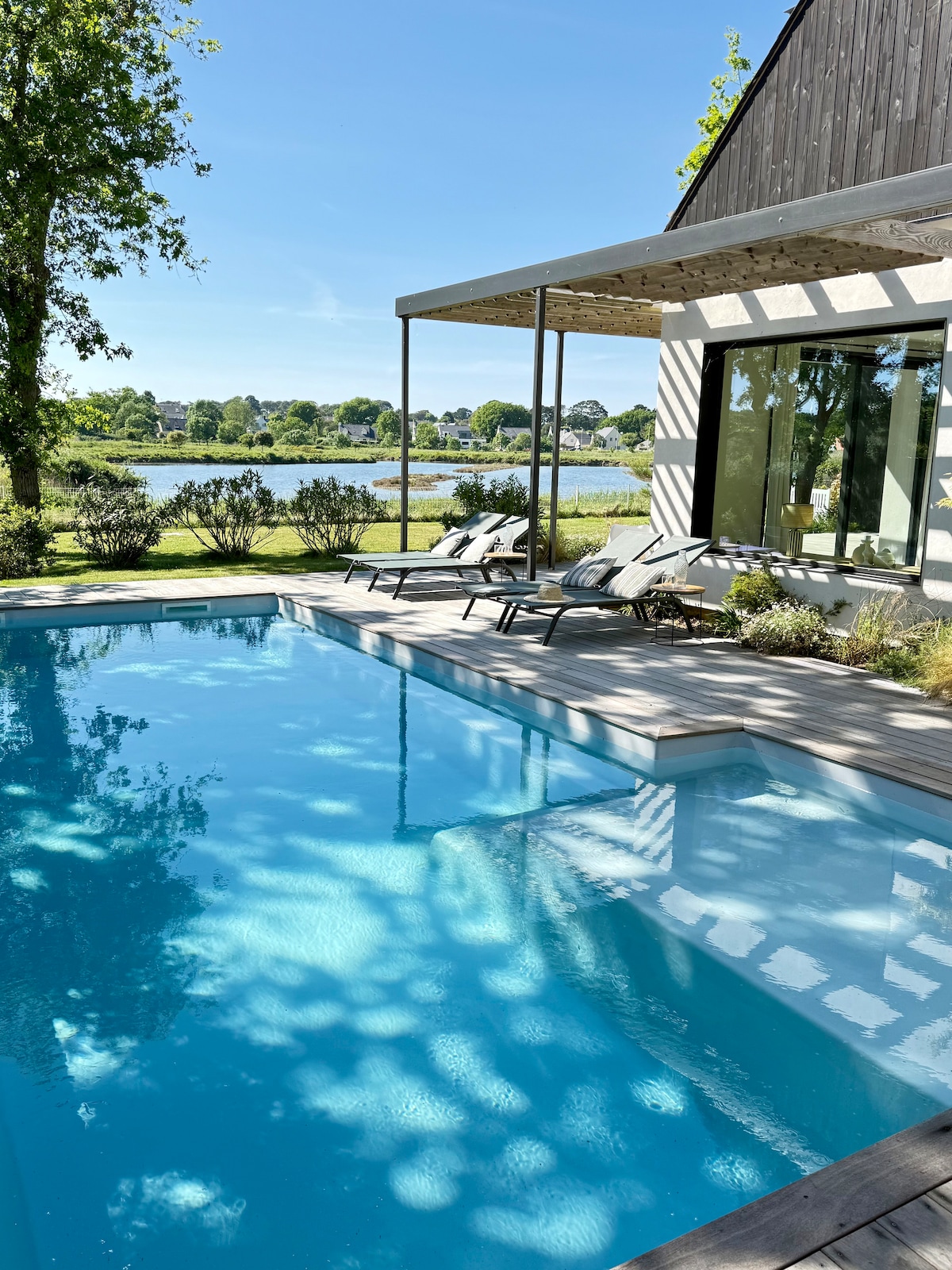 Architect-designed home in the heart of Quimiac, just 300m (5-min walk) from the beach in a peaceful lane. Perfect for two families, sleeps up to 12 guests. Enjoy a sunny, quiet stay with a 50m² wooden deck and south-facing garden. Nearby: coastal walks, salt marshes, sailing, and fishing. Bring your own linens or rent via Loclinge. Wi-Fi option: €35 Early check-in/late check-out: €200 No pets allowed