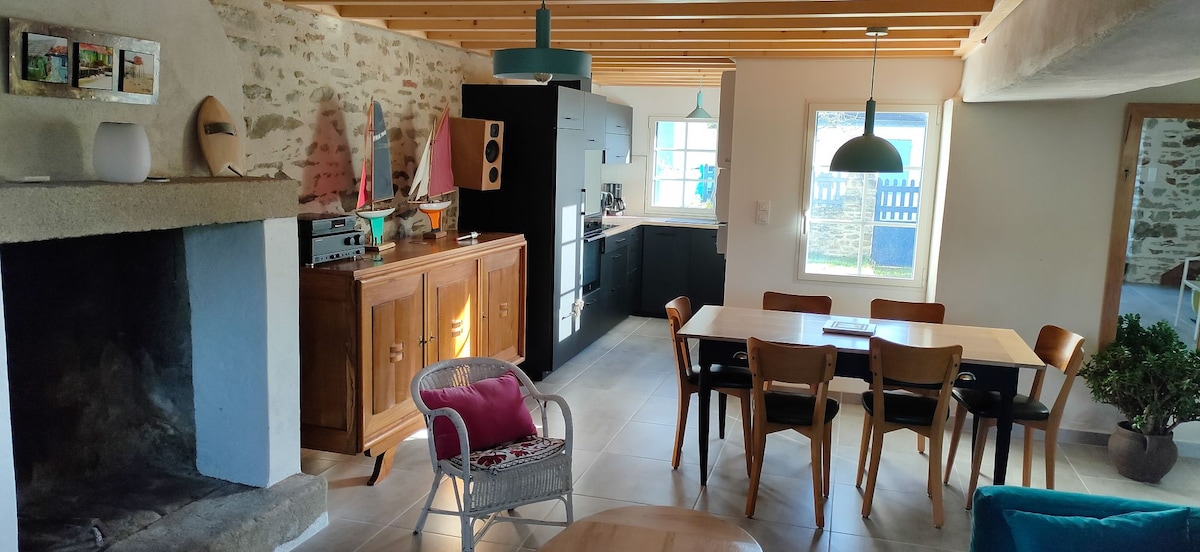 Kis, karakteres nyaraló, amely 2014-ben épült egy kellemes erdős telken, 300 méterre a strandtól és 400 méterre a falutól, ahol minden kényelmi szolgáltatás megtalálható. Funkcionális és könnyen élhető a napsütéses napokon, kényelmes és meleg a holtszezonban, a 60-as évekből származó tengerparti üdülőhely szellemében rendeztük be. Ideális hely az akkumulátorok feltöltésére, de ellátogathatsz a Presqu'île Guérandaise-ba, a Brière-be, a Morbihan-öbölbe vagy a Belle-Ile-en-Merbe (La Turballe-ból) is.