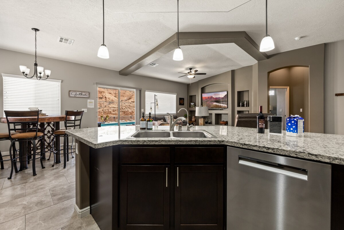 Élvezd a pihentető kiruccanást az új luxusotthonunkban, amely a Snow Canyon State Park lábánál található az exkluzív Encanto Resort zárt közösségben. Élvezd a környező vörös sziklás hegyek nyugalmát, pihenj a gyógyfürdőben vagy a fűtött medencében, ahonnan panorámás kilátás nyílik a vörös sziklákra, vagy lazíts, és igyál meg egy pohár bort a tűz mellett, miközben a hátsó kerti vízesés nyugalmát élvezed. Mindössze pár percre vagy a Black Desert Golf Resorttól, a túrázástól, a kerékpározástól, a Red Mountain Spától és a Tuacahn amfiteátrumtól.