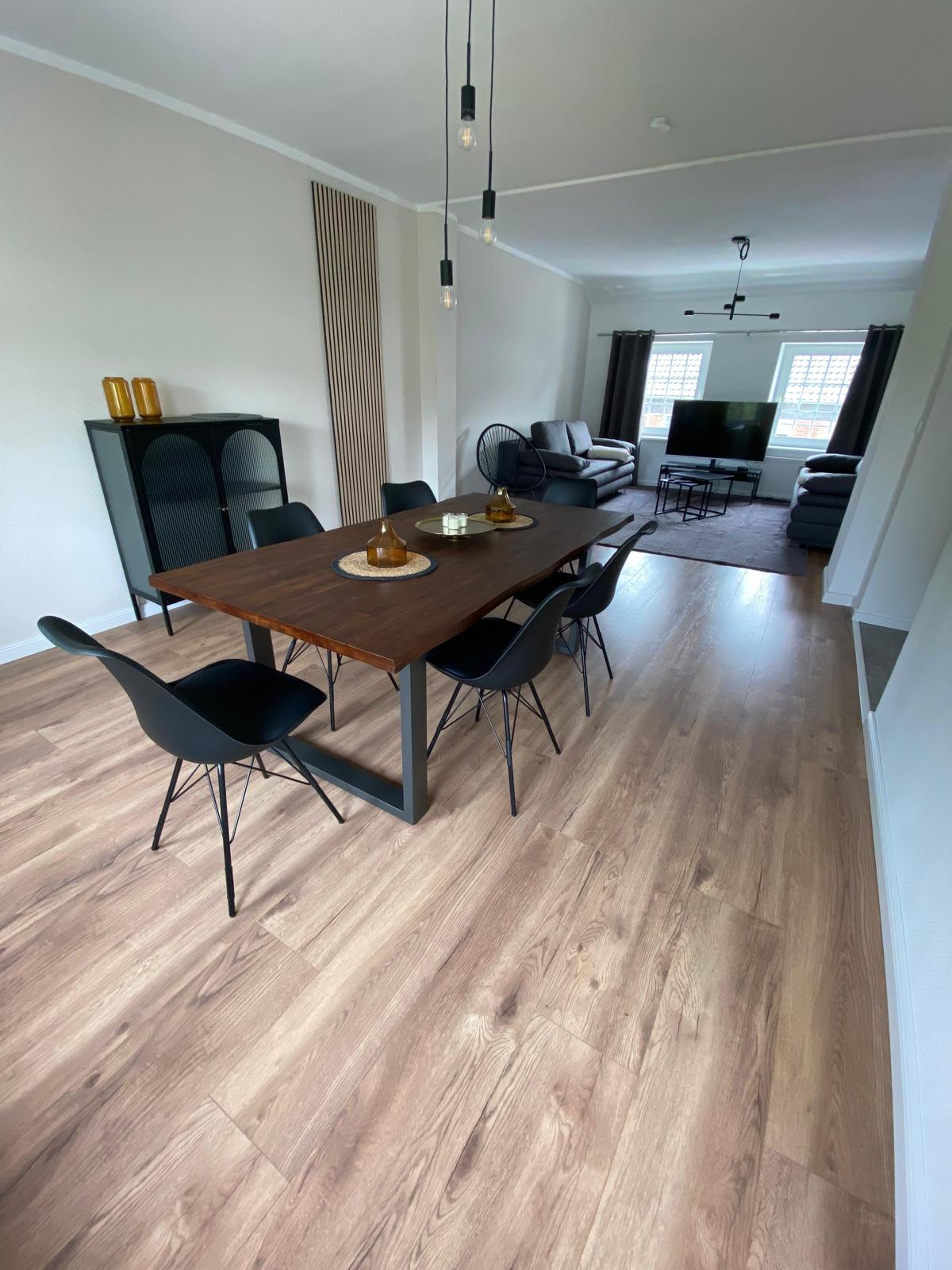 Ob als Ferienwohnung für den Familienausflug oder für Messegäste, Sie werden von traumhaften 110 qm Wohnung zum anspruchsvollen Verweilen eingeladen. Genießen Sie das besondere Interieur: Edle Materialien für hohe Ansprüche. Die hochwertige Einrichtung wurde mit Sorgfalt ausgewählt, um Ihr Wohlgefühl zu garantieren.Der Essbereich und die Küche sind offen gestaltet und gliedern sich nahtlos an den lichtdurchfluteten Wohnbereich an.