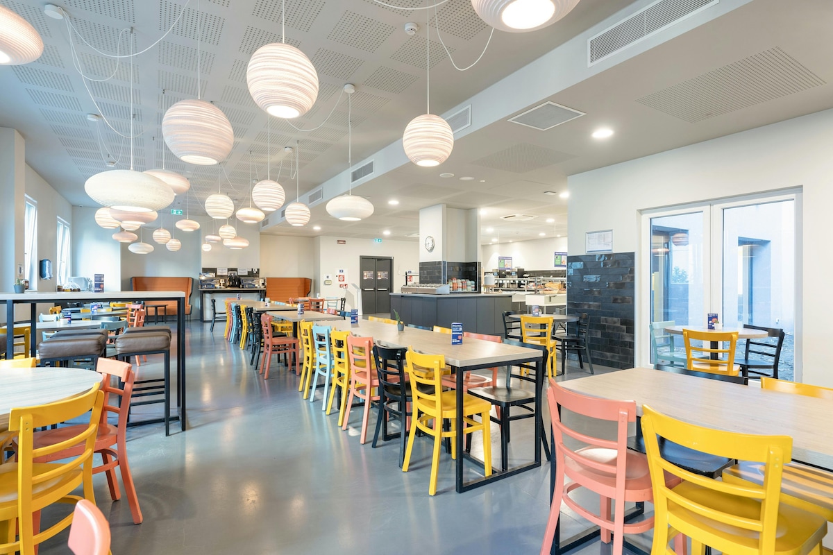 Our Twin Room offers 16 sq m of comfort for two guests, featuring two twin beds, a private bathroom with eco-friendly toiletries and hair dryer. Enjoy a 23-inch flat-screen TV with digital channels, free WiFi, a desk, LED lighting, and pet-friendly options. A free crib is available for families.