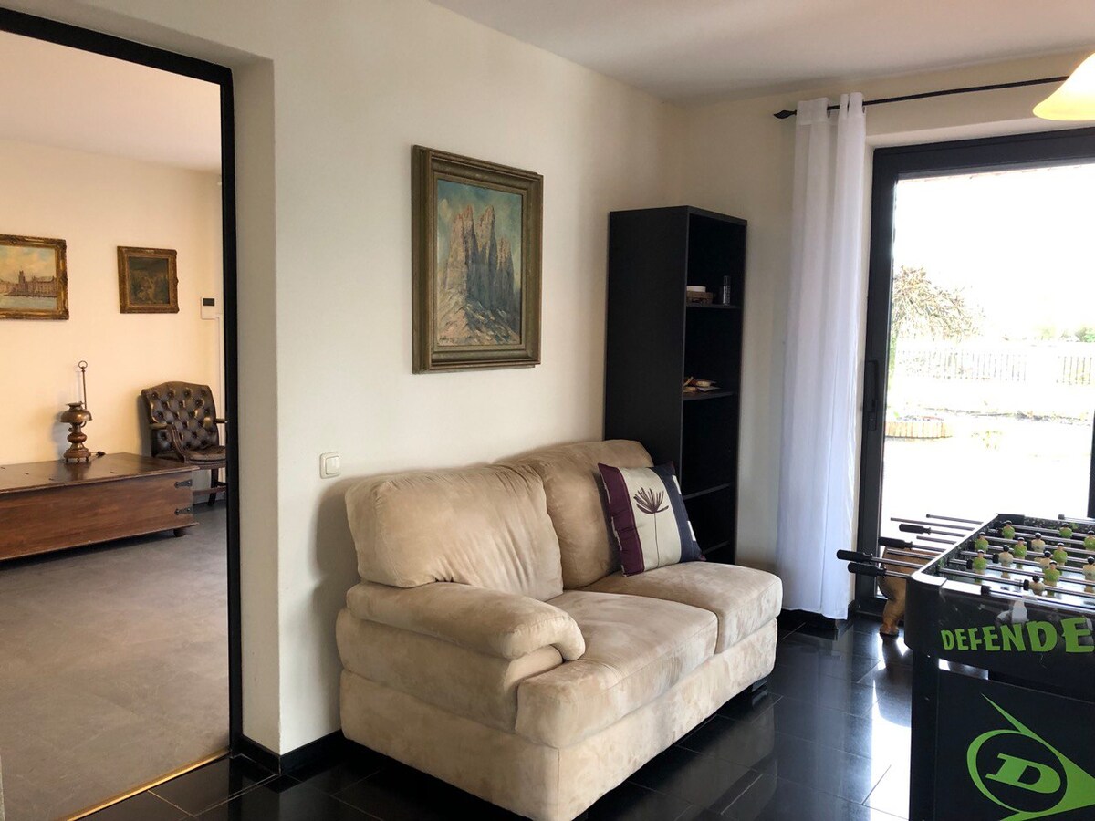 Nähe Stadtzentrum (4 km), Bushaltestelle 150 m. Das Haus liegt sehr ruhig. Du kannst vom Studio aus in ein freies Feld schauen. Komplett eingerichtete Küchenzeile (Spüle, Kühlschrank, Ceranfeld 2 Felder, Schränke). Doppelbett (2m x 1,60 m).Das Studio verfügt über eine Klimaanlage. Für ein Kleinkind haben wir ein Babybett. Meine Unterkunft ist gut für Paare, Geschäftsreisende und Familien (mit Kindern). Wir achten sehr auf die Umwelt: Solarstrom, ProWindgas (grüner Wasserstoff), Mülltrennung…