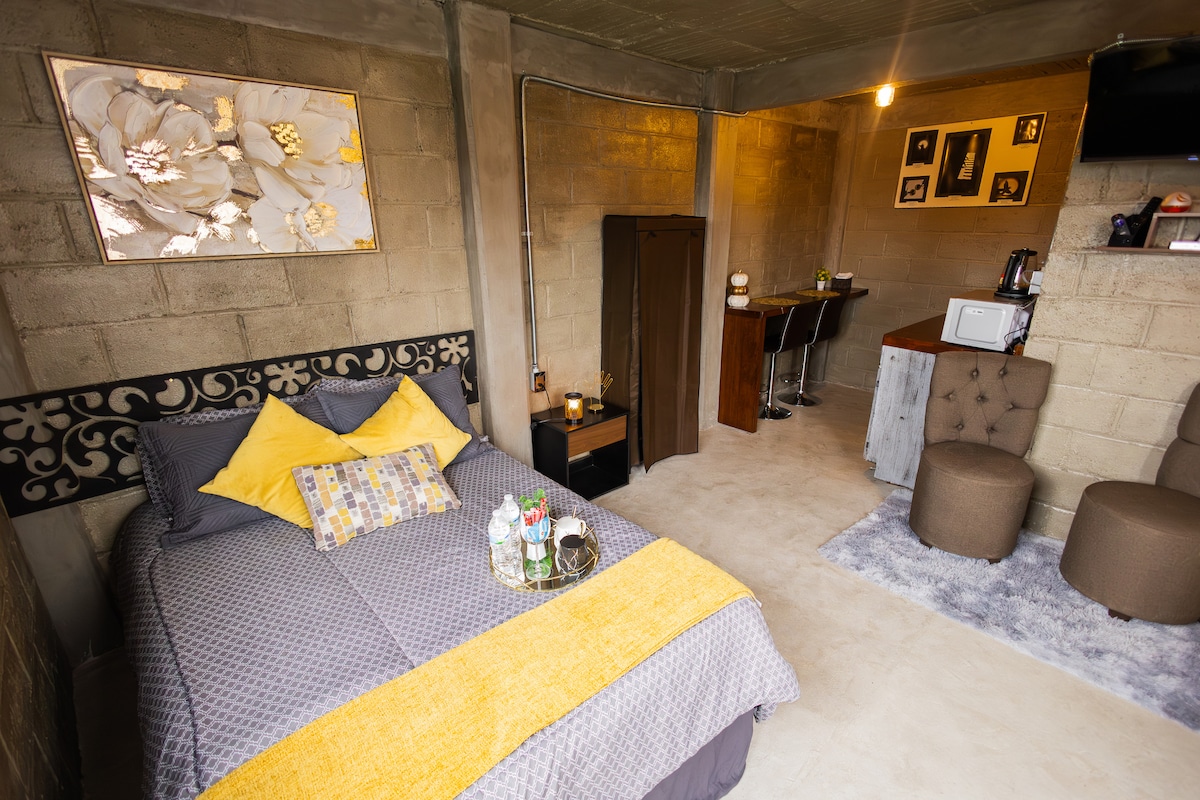 Élvezd ezt a gyönyörű és újonnan felújított MiniLoftot Metepecben. Nagyon jó helyen található, 4 háztömbnyire a bodega aurrerától. 5 perc a főtértől, 10 perc a Metepec galériákig, 13 perc Toluca galériákig. 20 perc a Toluca nemzetközi repülőtérig. 5 perc a Starbucksig, minden bankig. 10 perc a sonora grillig, szusi tekercs, szárnyak. Van egy szoba franciaággyal és egy kanapéágy, amely körülbelül queen-size ággyal rendelkezik. Fürdőszoba zuhanyzóval, konyhával és bárral.