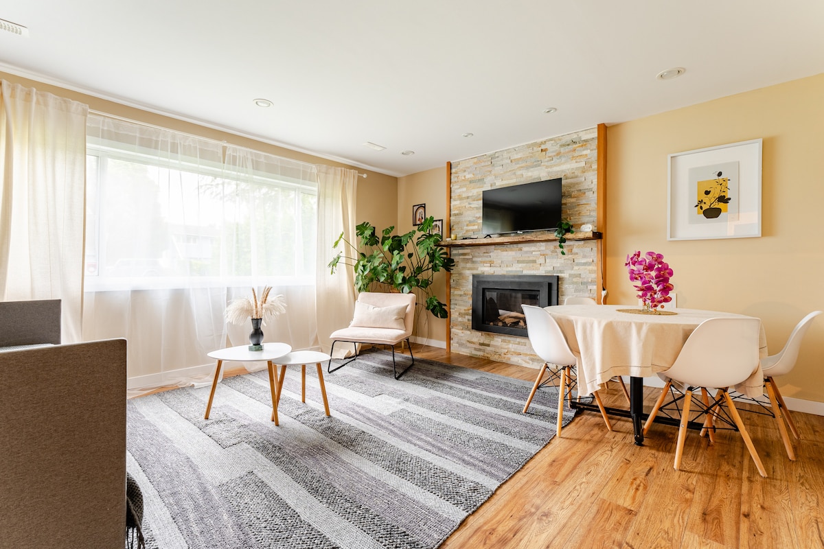 A spacious suite with lovely garden, offers full kitchen, open concept dining/living room area and a private bathroom. Sleep well on a queen bed with fresh white linens and heavenly pillows. Enjoy free wi-fi, watch your favourite Netflix movies in a huge TV with a warm electric fireplace. Morning coffee and bottles of water are complimentary! Located in a quiet neighbourhood with free parking space. 20 minutes drive from/to Tsawwassen Ferry terminal. 30 minutes drive from/to YVR airport.