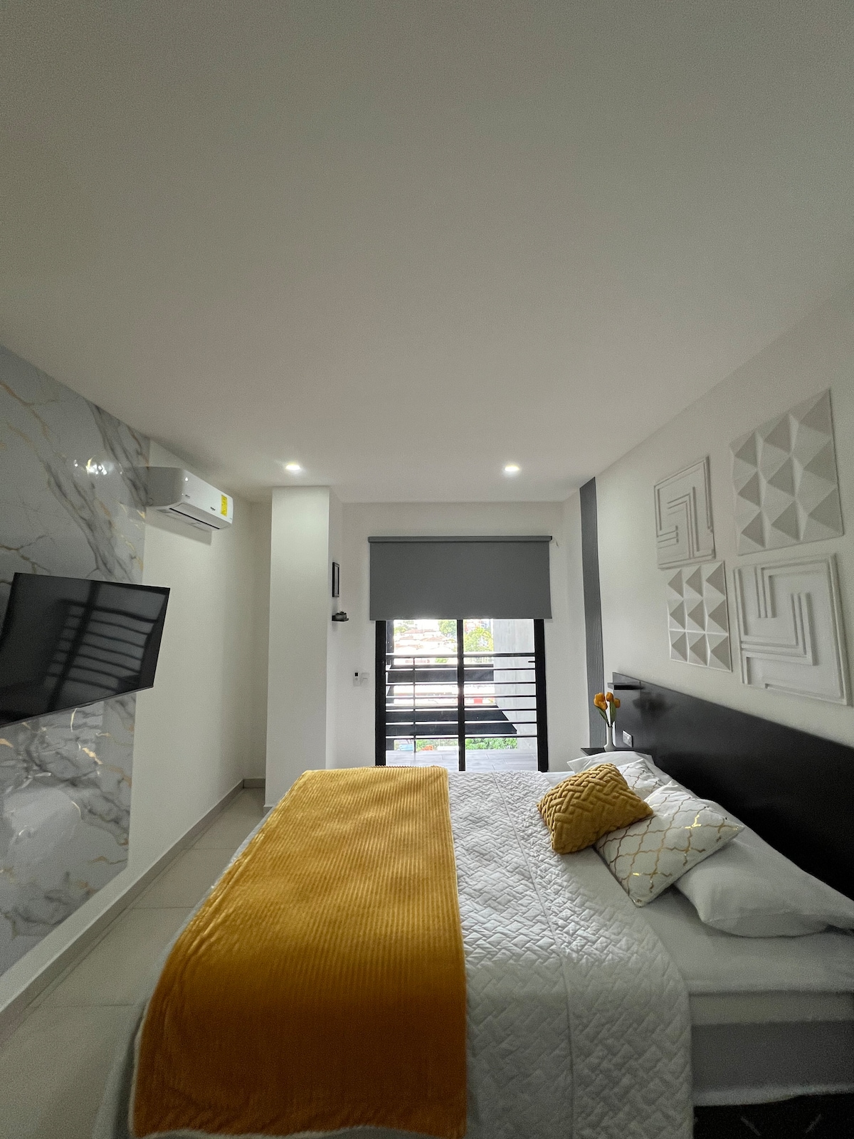 Modern apartman, mini edzőterem és Work Cube, biztonságos lakóövezetben, 45 percre a repülőtértől, 15 percre a fő bevásárlóközpontoktól. A környéken könnyen elérhetők a szupermarketek, gyógyszertárak, Cuscatlán stadion, buszjáratok, éttermek stb. A negyedik szinten található légkondicionáló, 55 "-es Smart TV, 50 mg Wi-Fi, konyha, privát fürdőszoba, kis íróasztal, mosóterület, 1 privát parkoló és távirányító bejárat.