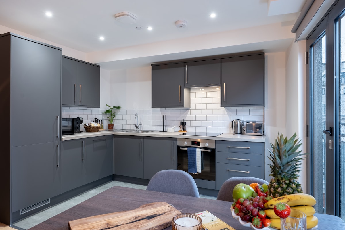 Élvezd a város panorámáját egy stílusos, 7. emeleti lakásból Leeds szívében. Főbb jellemzők: Szupergyors 1 GB-os Wi-Fi és külön munkaterület. Egyszerű önálló bejutás. Lifttel a 7. emeletre, ahonnan lenyűgöző kilátás nyílik a városra. Két kétszemélyes hálószoba szállodai minőségű ágyneművel. Teljes konyha, mosógéppel/szárítógéppel a hosszabb foglalásokhoz. Sétálj az üzletekhez, bárokhoz és vasútállomáshoz (percek). Tökéletes: távolról dolgozóknak, csoportoknak/barátoknak, hosszú távú foglalásokhoz.