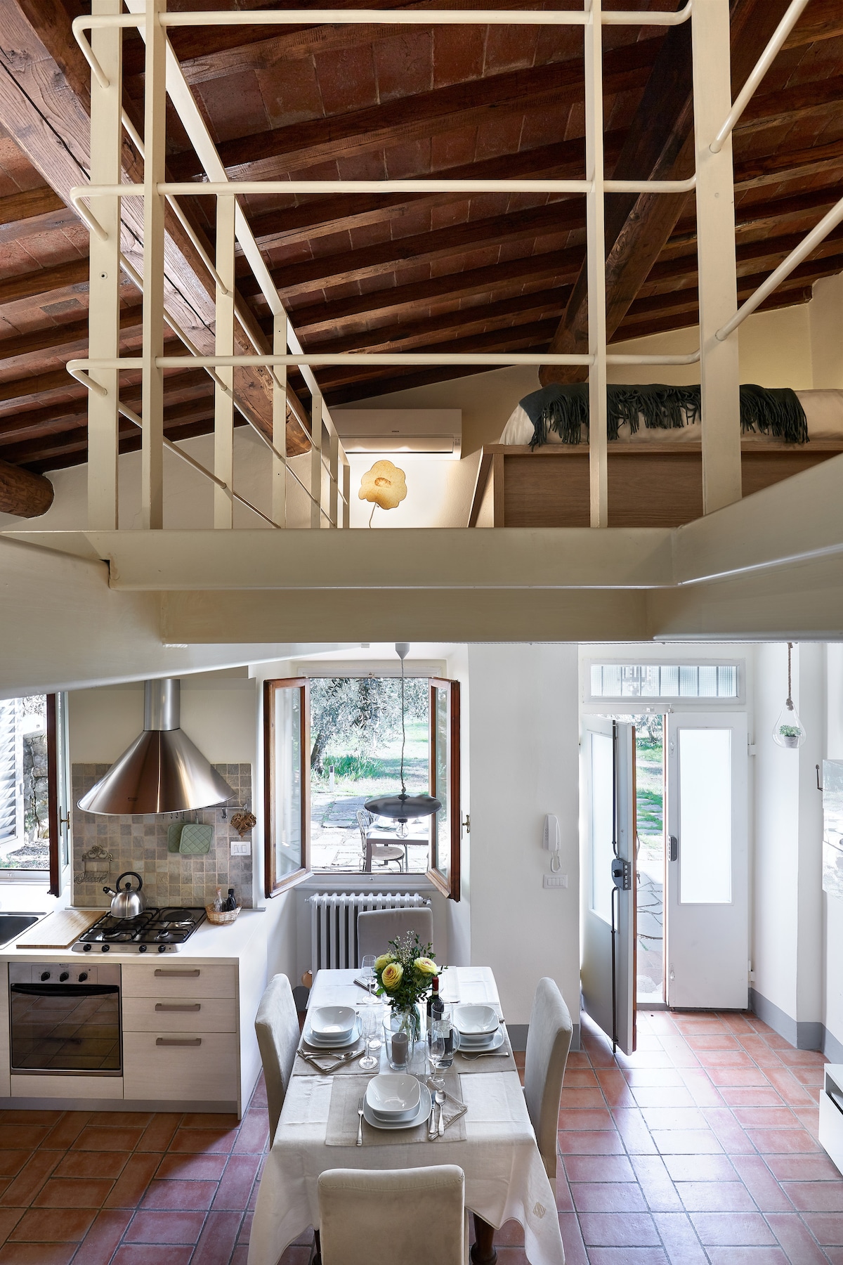 A Terrace-t egy kétszintes kétágyas szoba alkotja, amelyet a közelmúltban teljesen felújítottak és stílussal díszítettek. Settignanóban található, egy kis környéken, 6 km-re Firenze központjától a 10-es busszal, amely a vonal végén mindössze 50 méterre található a ház bejárati kapujától. 15 perc alatt könnyen elérheted a városközpontot. A kapu mellett található a Vida bár, amely mindig tele van ízletes süteményekkel és friss villamosos szendvicsekkel.