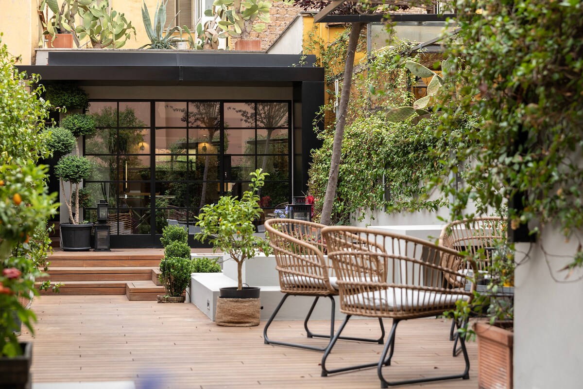 Élvezd az 5 csillagos luxusszállást ⭐⭐⭐⭐⭐ egy egyedi, történelmi római raktárépületből kialakított dizájnerloftban. A Róma szívében, a Colosseum, a Forum Romanum és a Capitolinus-domb között elterülő, egyedülálló szálláshely a báj, az elegancia és a nyugalom ritka keverékét kínálja – ráadásul egy nagy, rejtett privát parkkal is meglep. Szállj meg egy igazán különleges helyen, ahol a történelem, a stílus és a kényelem találkozik, és autentikus, kifinomult római élményben lehet részed.
