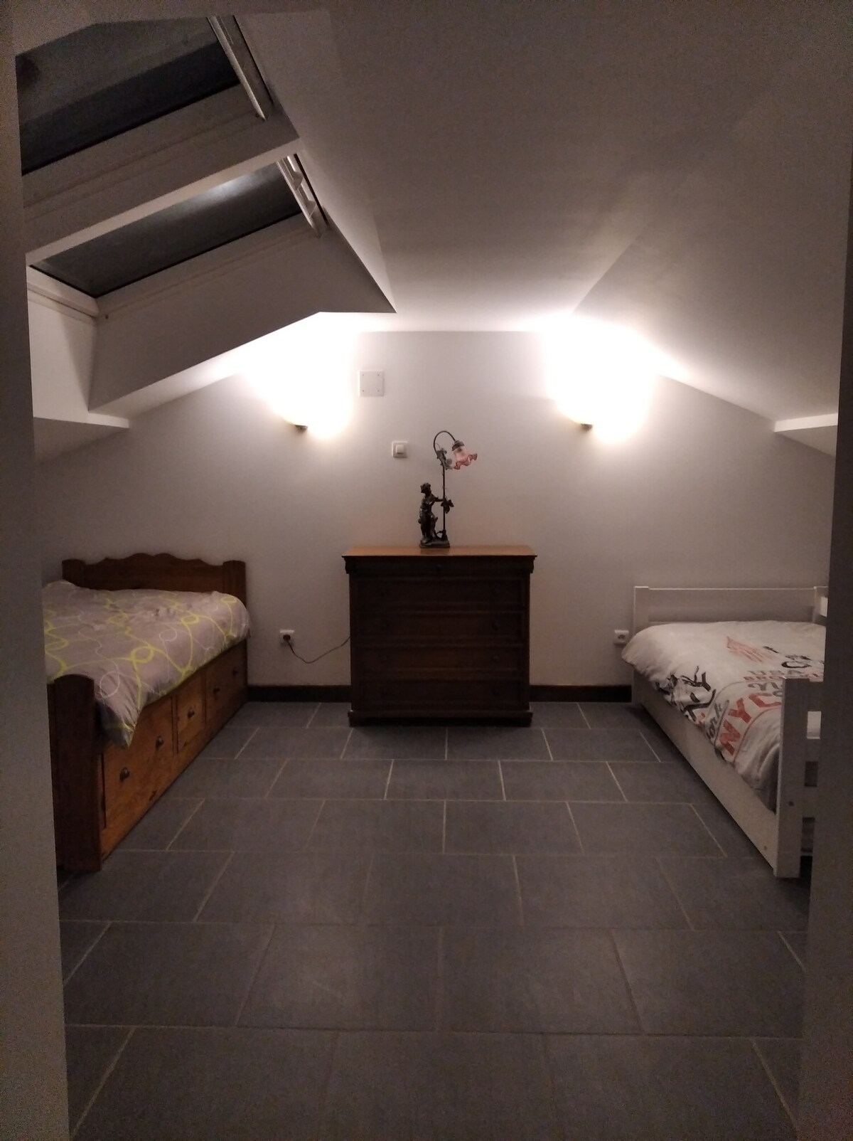 Ce logement est intégré au sein d'une petite ferme équestre. il y a sur place quatre gîtes. Celui-ci est entièrement équipé. Seule une chambre est pourvue d'une fenêtre , les autres pièces sont équipées de velux. Ce logement est idéal pour un couple avec des enfants ou deux couples. Sur place se trouvent des animaux de la ferme et un espace aménagé avec table et barbecue