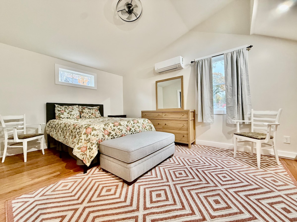 Üdvözlünk a tökéletes szálláshelyeden, akár üzleti útra, szabadidős célra vagy csak egy családi kiruccanásra vágysz. A ház teljes első emelete a tiéd! A hely egy bútorozott hálószobával, teljes fürdőszobával, konyhával, játékterülettel rendelkezik, amely a lehető legnagyobb kényelmet és magánszférát kínálja. A helyszíni parkolással és a saját bejárattal minden kéznél lesz, amire szükséged van. Használd ki, hogy a közelben számos étterem, bár és üzlet található, vagy próbáld ki a TopGolfot, a mozit és a bowlingpályát!