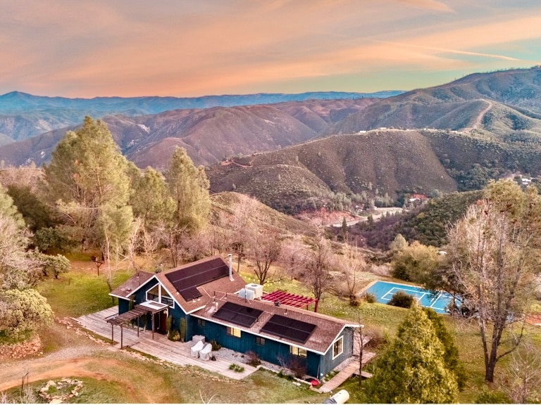 Our peaceful 9 acre property sits on a high ridge with expansive views of the Sierras. The home, a modern cabin experience, is perfect for a family but cozy enough for couples. You will be just 35 minutes (22 miles) from the all-season Arch Rock Entrance to Yosemite NP. Enjoy the seclusion with stunning views Play Pickleball in your own private court Unwind with your feet up near the indoor or outdoor fireplaces Drive along Merced River to the YNP Recharge with the level-2 EV charger