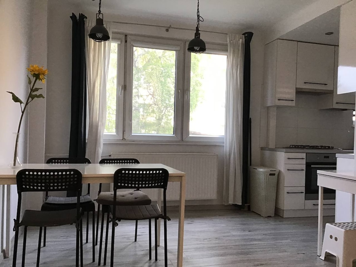 Hangulatos, tágas, 45m2-es lakás hálószobával, fürdőszobával, a konyhához kapcsolódó nappalival és internet-hozzáféréssel egy nagyon csendes területen egy új lakótelepen. Az épület mellett egy új játszótér található. A parkolóhely az épület mellett található. Bevásárlóközpont, éttermek, edzőterem, mozi és úszómedence körülbelül 10 perc sétára található a lakástól. A különleges gazdasági övezet autóval körülbelül 10 perc alatt elérhető.