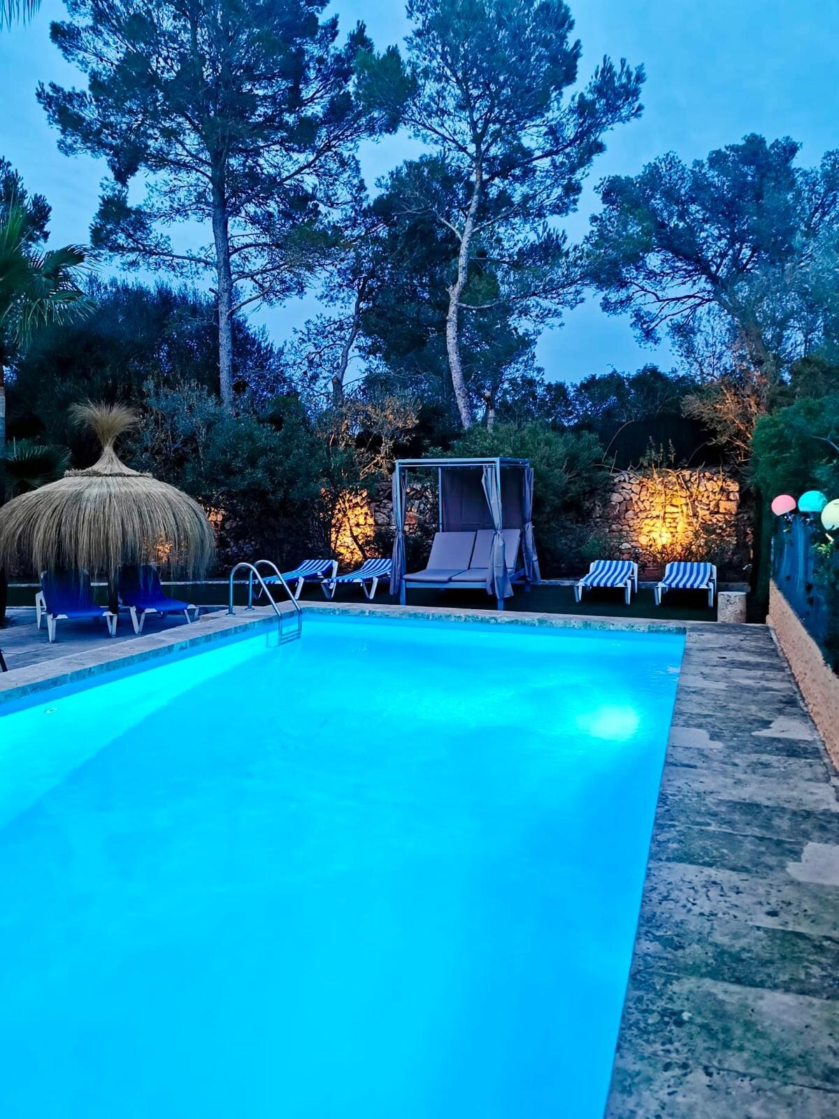Disfruta de una villa espectacular 50.000 mil metros únicos en pura naturaleza, rodeado de árboles y palmeras Tiene capacidad para 14 huéspedes, el pago de cada persona extra es de 50€ por persona y noche, es un espacio sin nadie que os moleste no hay vecinos alrededor, todo vallado en muy buenas condiciones en una zona muy segura y exclusiva una de las mejores playas del mundo en la isla se llama Es trenc.. un paraíso a 15 minutos en coche desde la villa. Los esperamos en nuestras villas ✨